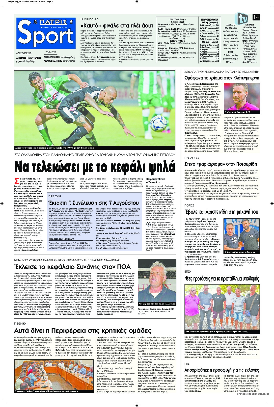 NewsMEDIA Διαβάστε όλα τα πρωτοσέλιδα των αθλητικών εφημερίδων του Σαββάτου 18 Ιουλίου 2020 FacebookXEmailViberWhatsAppCopy URLΤυπώνω Διαβάστε όλα τα πρωτοσέλιδα των αθλητικών εφημερίδων του Σαββάτου 18 Ιουλίου. Πλήρης ενημέρωση με μια γρήγορη ματιά!