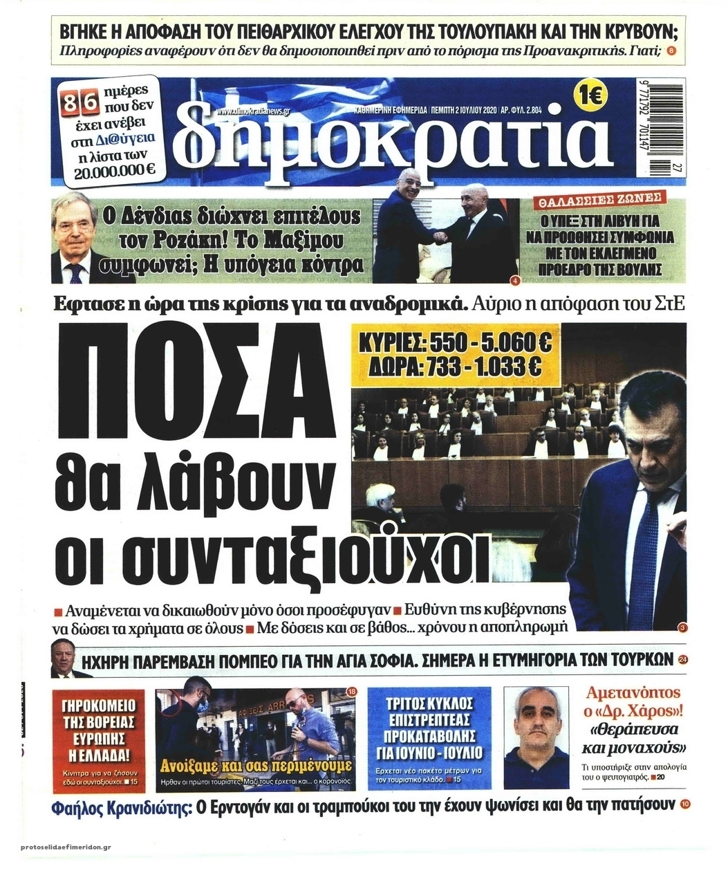 Διαβάστε όλα τα πρωτοσέλιδα των πολιτικών εφημερίδων της Πέμπτης 2 Ιουλίου. Πλήρης ενημέρωση με μια γρήγορη ματιά!