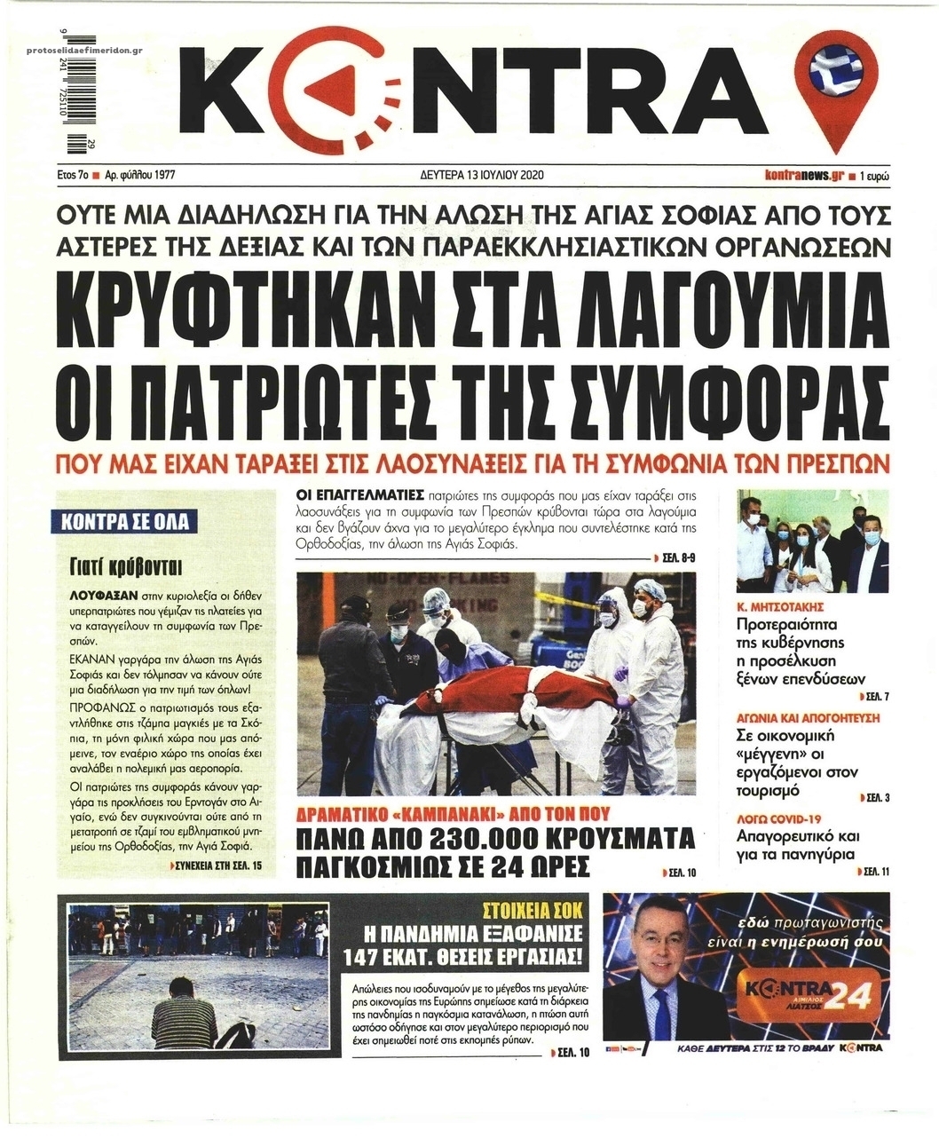 NewsMEDIASLIDER Διαβάστε όλα τα πρωτοσέλιδα των πολιτικών εφημερίδων της Δευτέρας 13 Ιουλίου 2020 FacebookTwitterEmailViberWhatsAppCopy URLΤυπώνω Διαβάστε όλα τα πρωτοσέλιδα των πολιτικών εφημερίδων της Δευτέρας 13 Ιουλίου. Πλήρης ενημέρωση με μια γρήγορη ματιά!