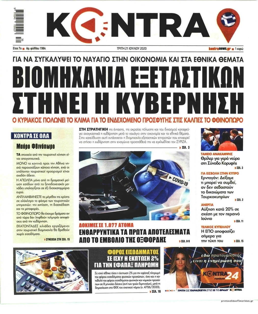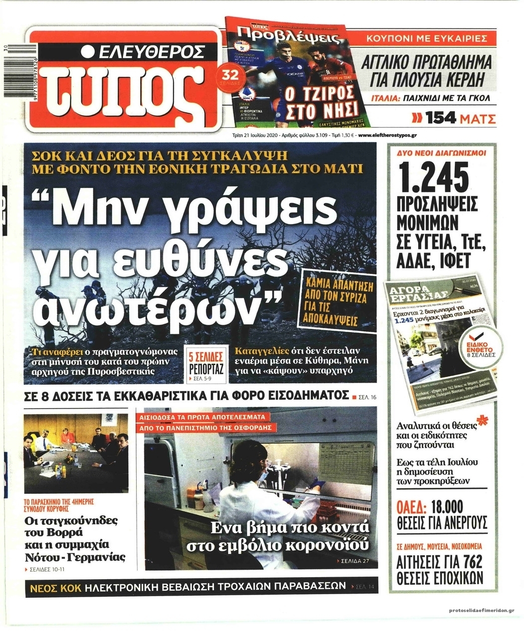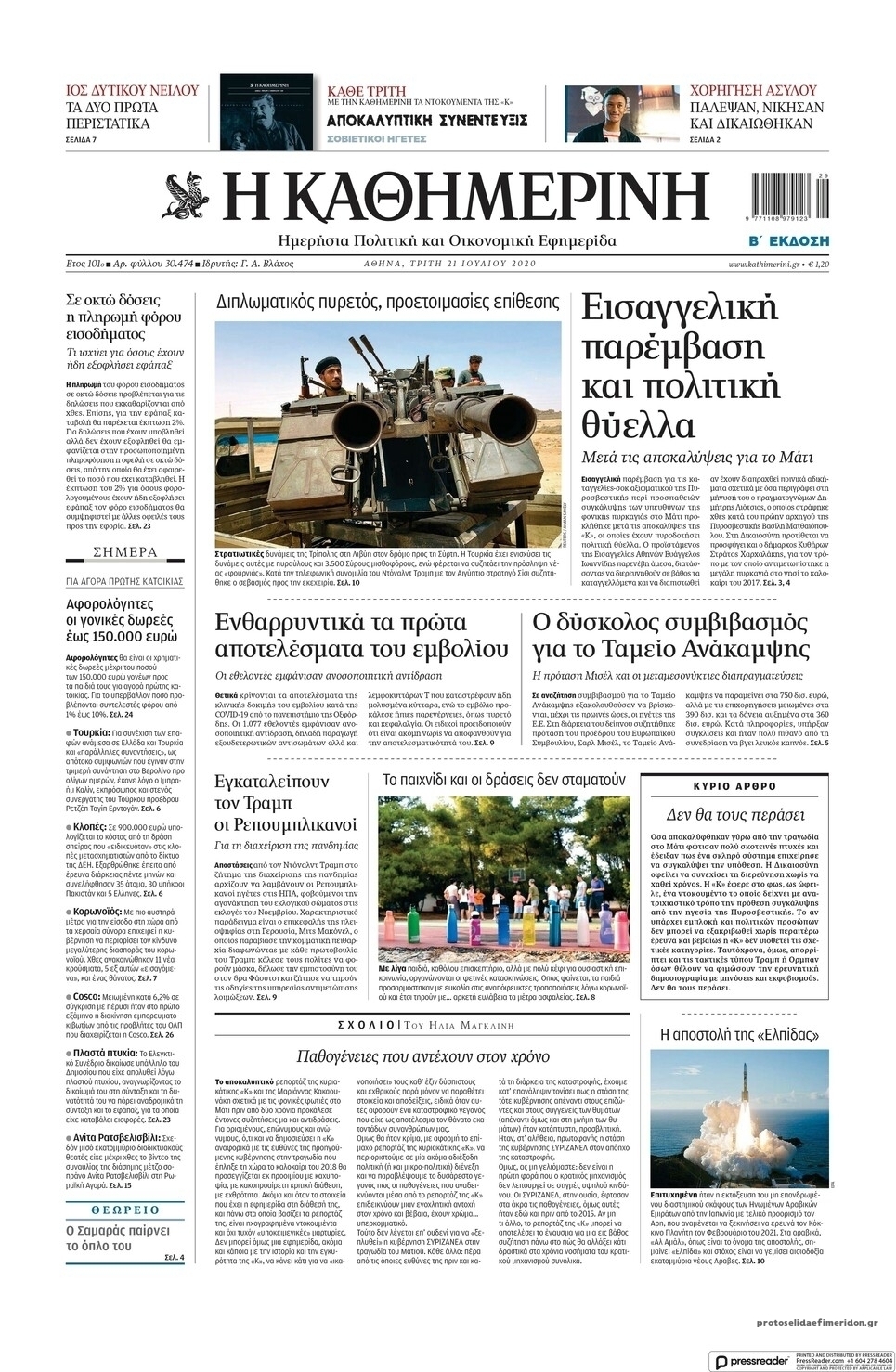 Διαβάστε όλα τα πρωτοσέλιδα των πολιτικών εφημερίδων της Τρίτης 21 Ιουλίου. Πλήρης ενημέρωση με μια γρήγορη ματιά!