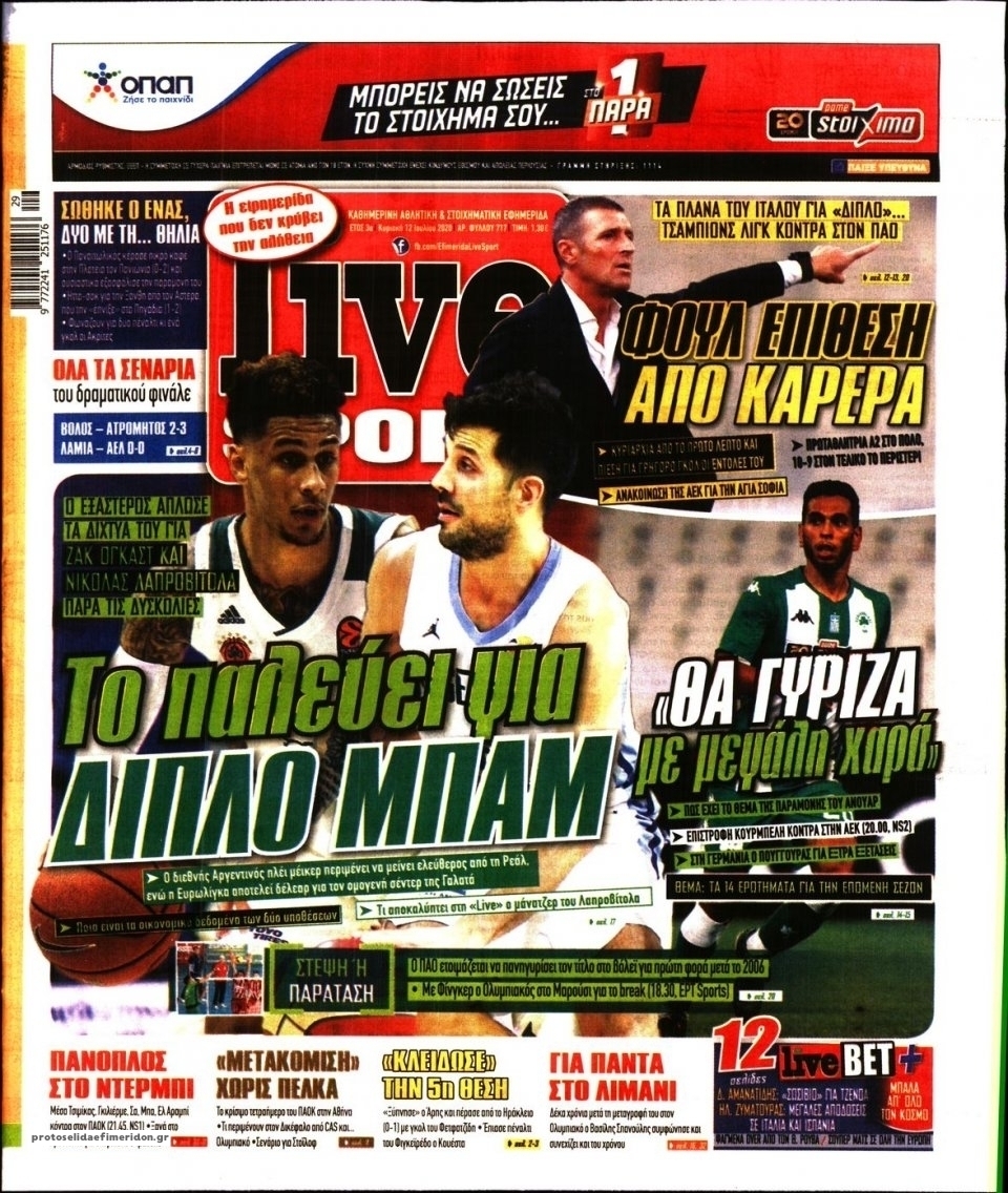 Διαβάστε όλα τα πρωτοσέλιδα των αθλητικών εφημερίδων της Κυριακής 12 Ιουλίου. Πλήρης ενημέρωση με μια γρήγορη ματιά!