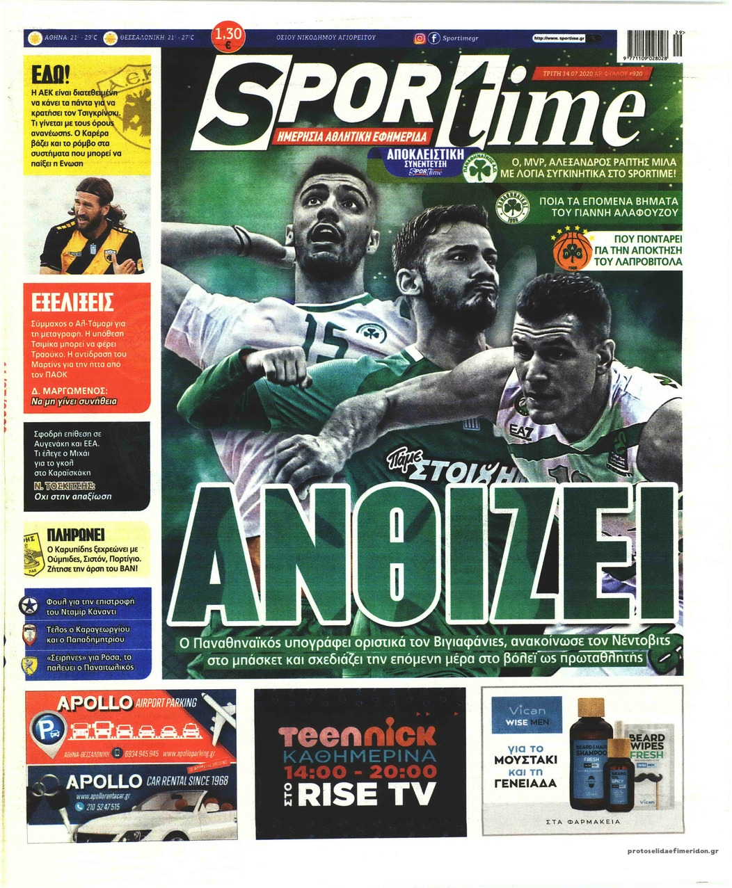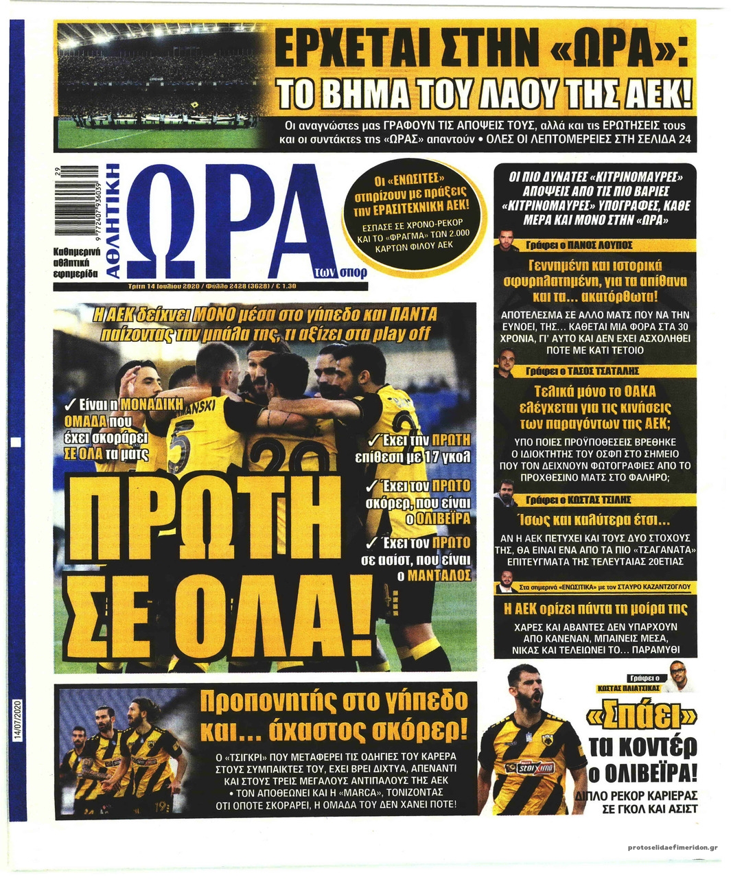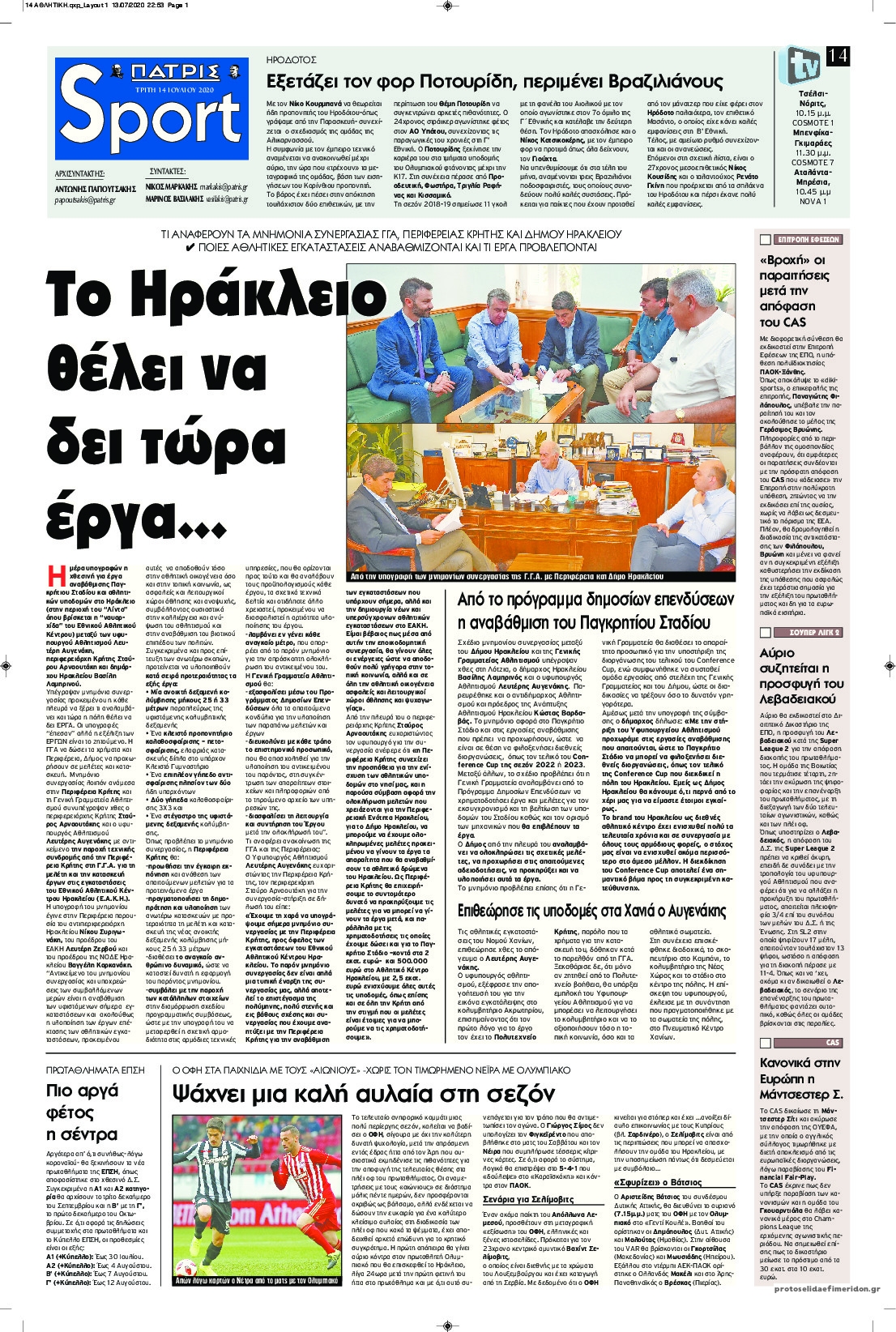 NewsMEDIA Διαβάστε όλα τα πρωτοσέλιδα των αθλητικών εφημερίδων της Τρίτης 14 Ιουλίου 2020 FacebookTwitterEmailViberWhatsAppCopy URLΤυπώνω Διαβάστε όλα τα πρωτοσέλιδα των αθλητικών εφημερίδων της Τρίτης 14 Ιουλίου. Πλήρης ενημέρωση με μια γρήγορη ματιά!