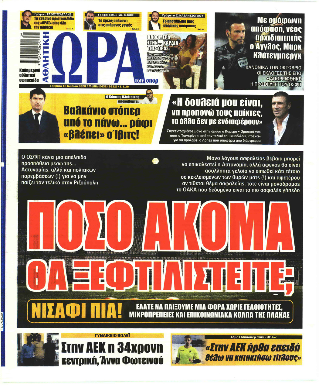 NewsMEDIA Διαβάστε όλα τα πρωτοσέλιδα των αθλητικών εφημερίδων του Σαββάτου 18 Ιουλίου 2020 FacebookXEmailViberWhatsAppCopy URLΤυπώνω Διαβάστε όλα τα πρωτοσέλιδα των αθλητικών εφημερίδων του Σαββάτου 18 Ιουλίου. Πλήρης ενημέρωση με μια γρήγορη ματιά!