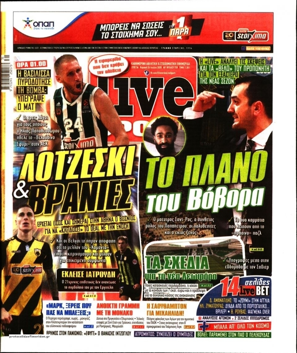 NewsMEDIA Διαβάστε όλα τα πρωτοσέλιδα των αθλητικών εφημερίδων της Κυριακής 26 Ιουλίου 2020 FacebookXEmailViberWhatsAppCopy URLΤυπώνω Διαβάστε όλα τα πρωτοσέλιδα των αθλητικών εφημερίδων της Κυριακής 26 Ιουλίου. Πλήρης ενημέρωση με μια γρήγορη ματιά!