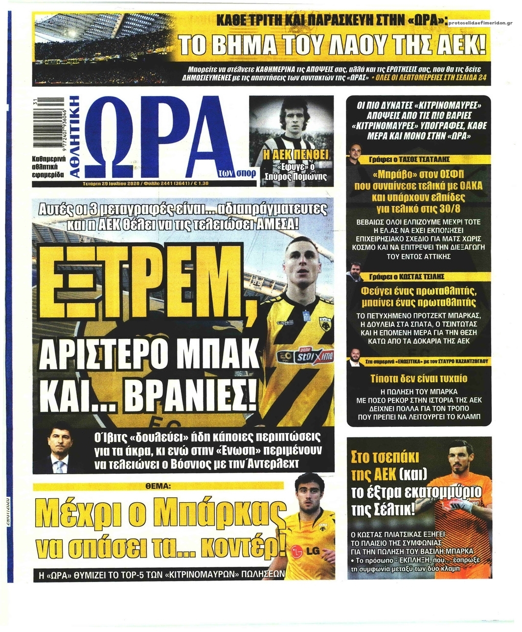 NewsMEDIA Διαβάστε όλα τα πρωτοσέλιδα των αθλητικών εφημερίδων της Τετάρτης 29 Ιουλίου 2020 FacebookTwitterEmailViberWhatsAppCopy URLΤυπώνω Διαβάστε όλα τα πρωτοσέλιδα των αθλητικών εφημερίδων της Τετάρτης 29 Ιουλίου. Πλήρης ενημέρωση με μια γρήγορη ματιά!