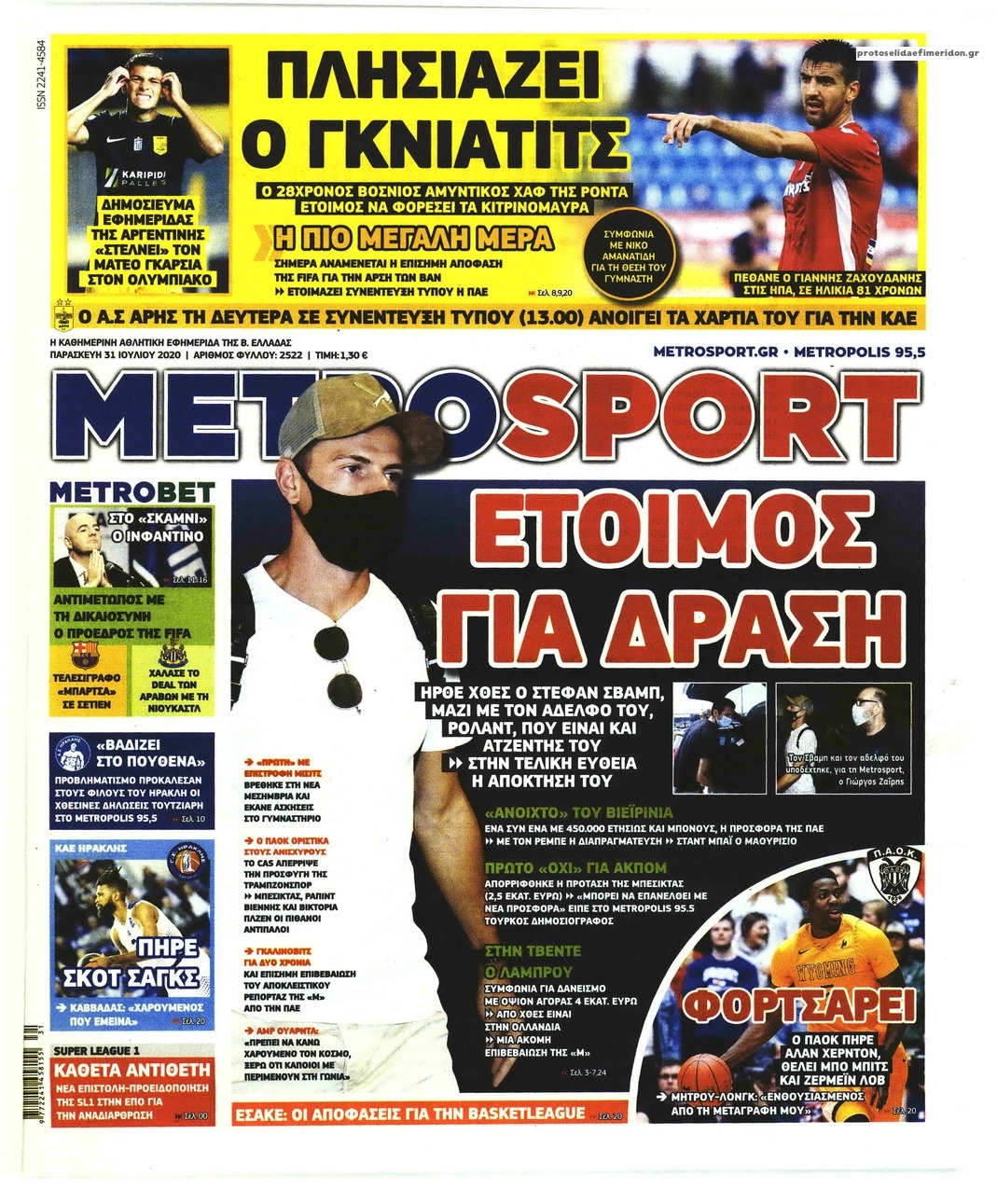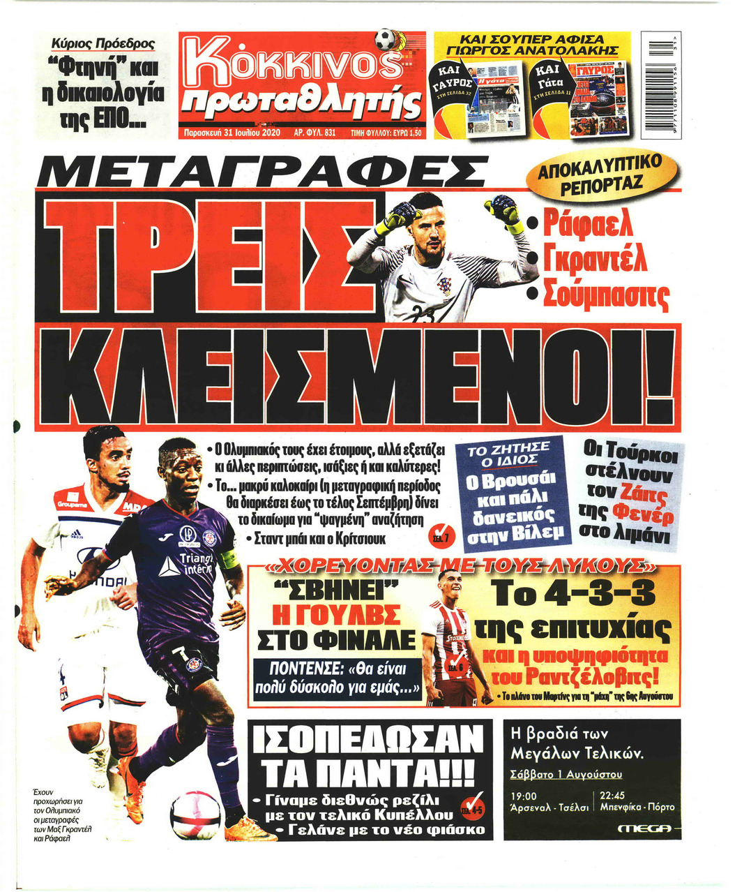 NewsMEDIA Διαβάστε όλα τα πρωτοσέλιδα των αθλητικών εφημερίδων της Παρασκευής 31 Ιουλίου 2020 FacebookTwitterEmailViberWhatsAppCopy URLΤυπώνω Διαβάστε όλα τα πρωτοσέλιδα των αθλητικών εφημερίδων της Παρασκευής 31 Ιουλίου. Πλήρης ενημέρωση με μια γρήγορη ματιά!