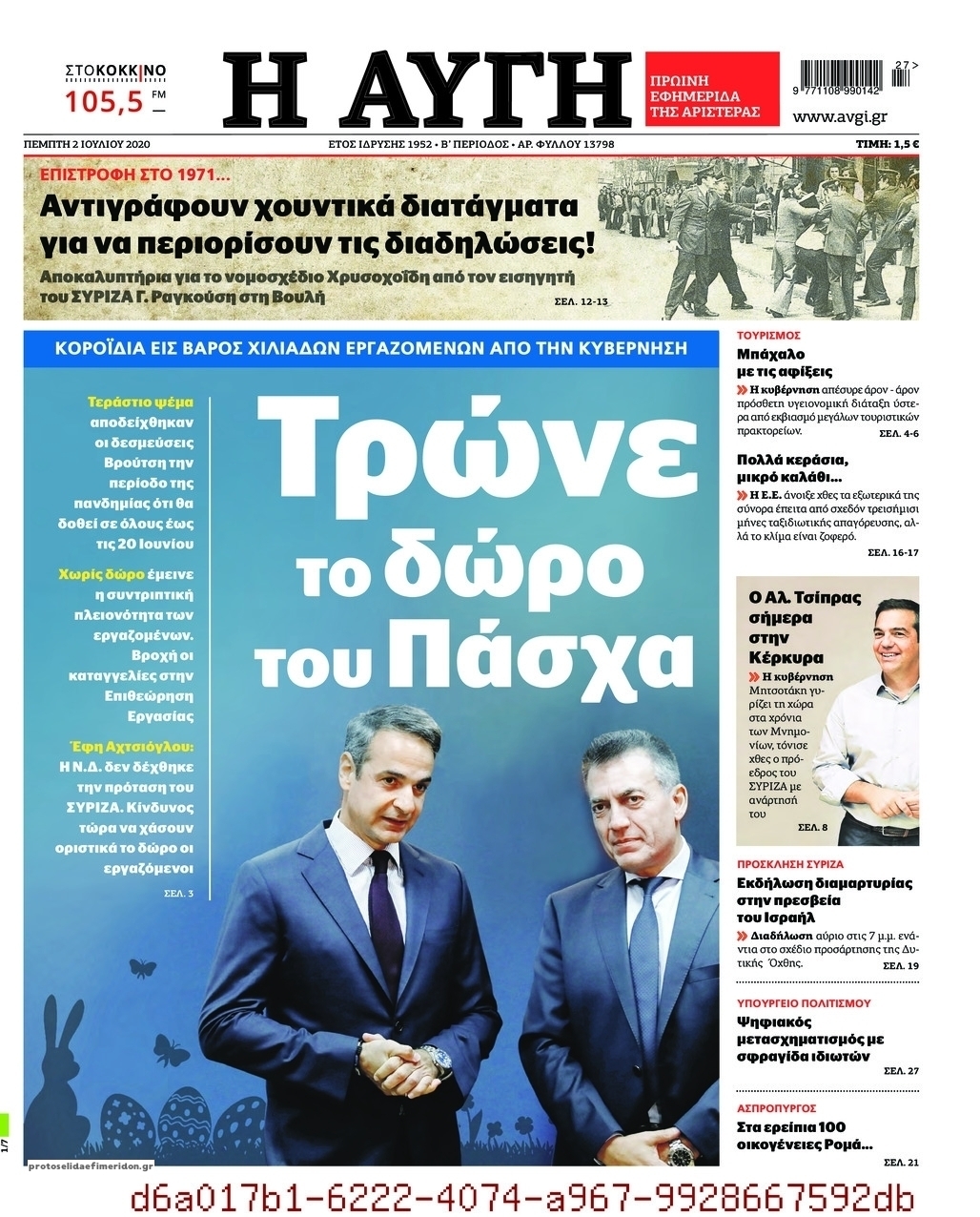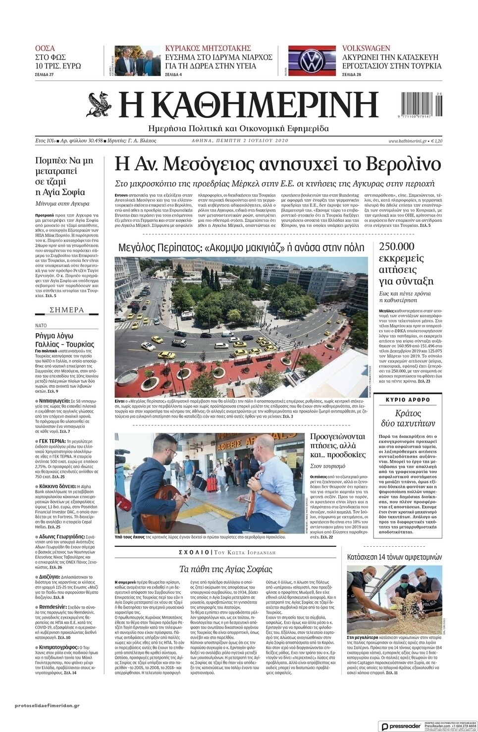 Διαβάστε όλα τα πρωτοσέλιδα των πολιτικών εφημερίδων της Πέμπτης 2 Ιουλίου. Πλήρης ενημέρωση με μια γρήγορη ματιά!
