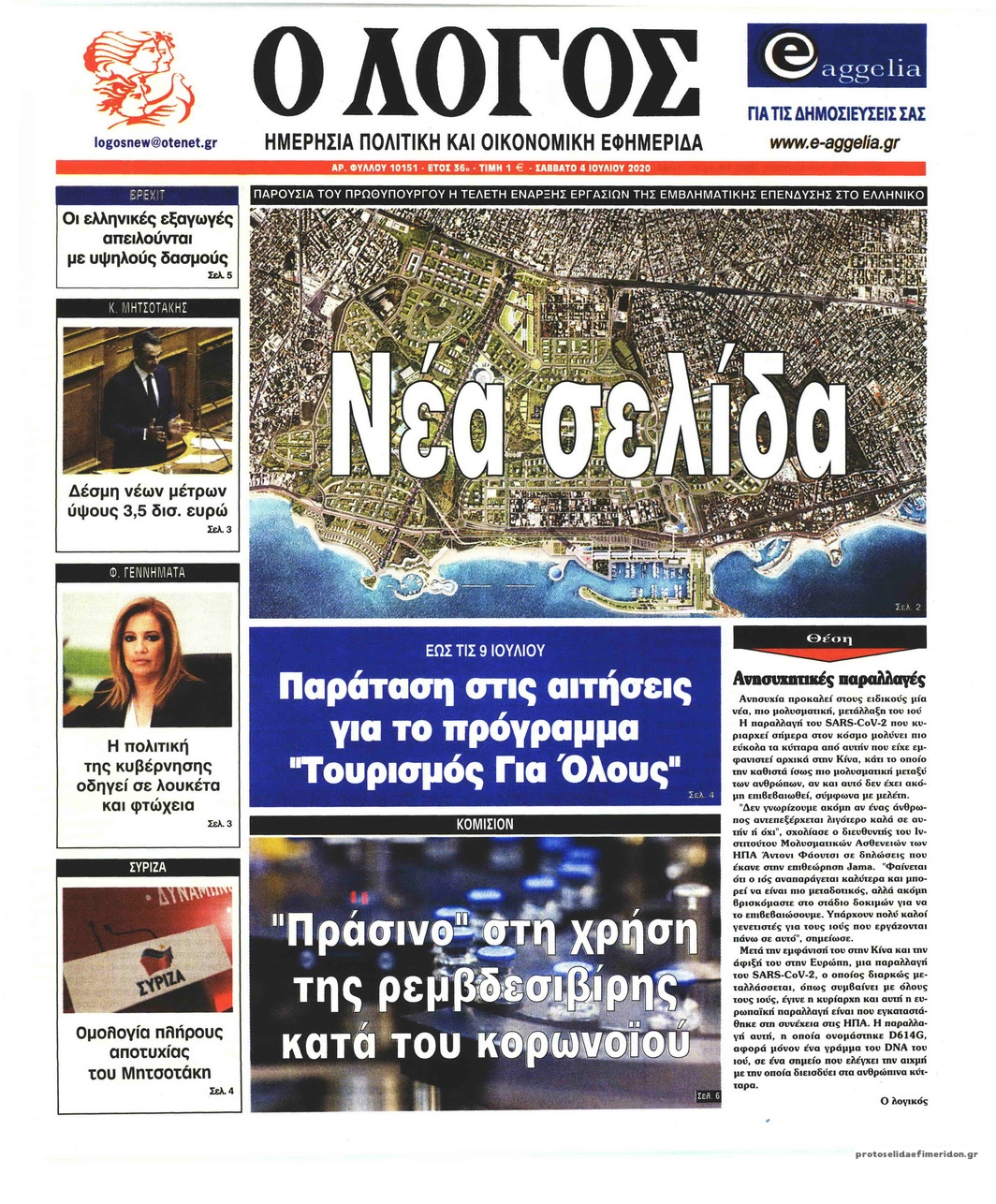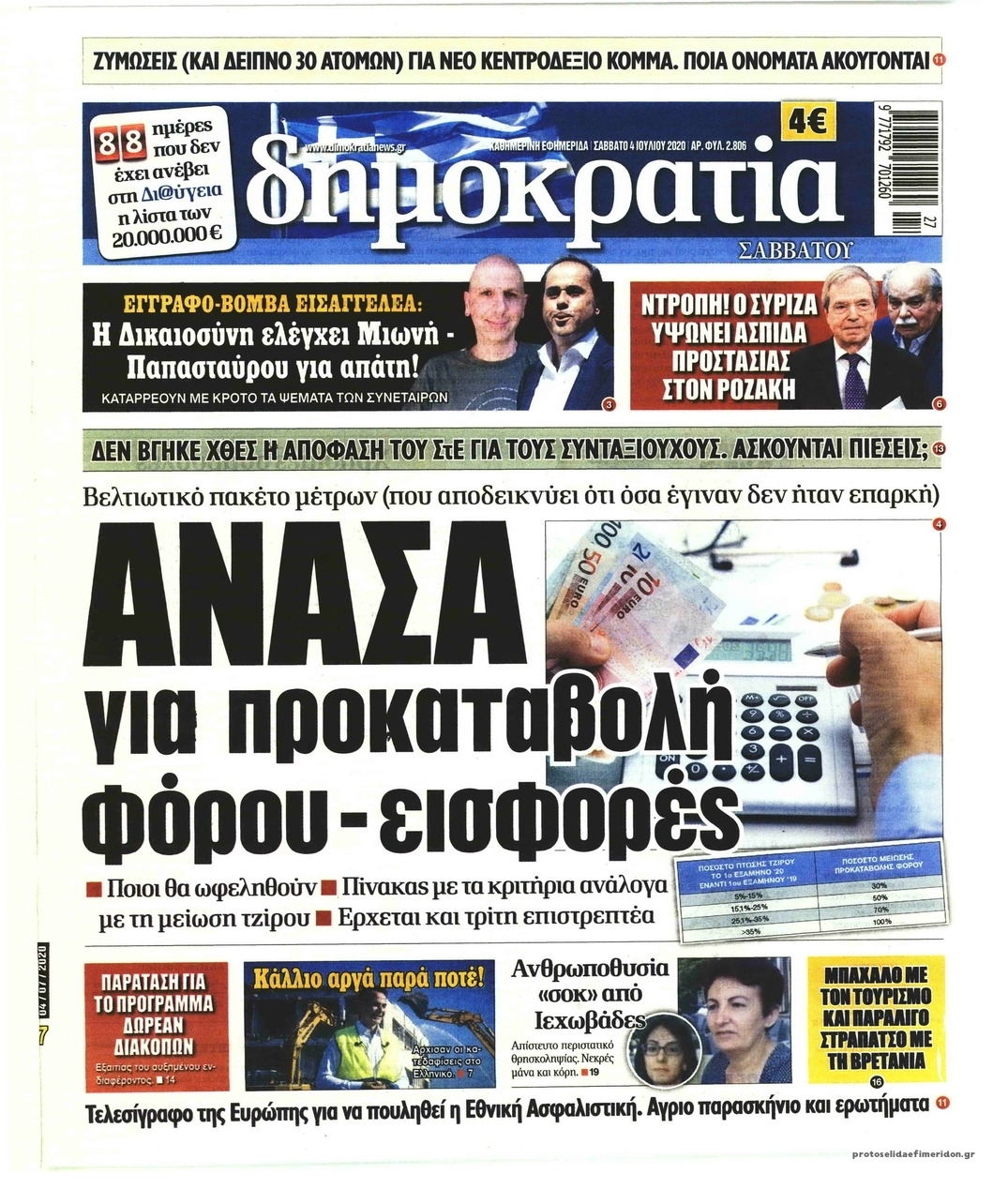 Διαβάστε όλα τα πρωτοσέλιδα των πολιτικών εφημερίδων του Σαββάτου 4 Ιουλίου. Πλήρης ενημέρωση με μια γρήγορη ματιά!