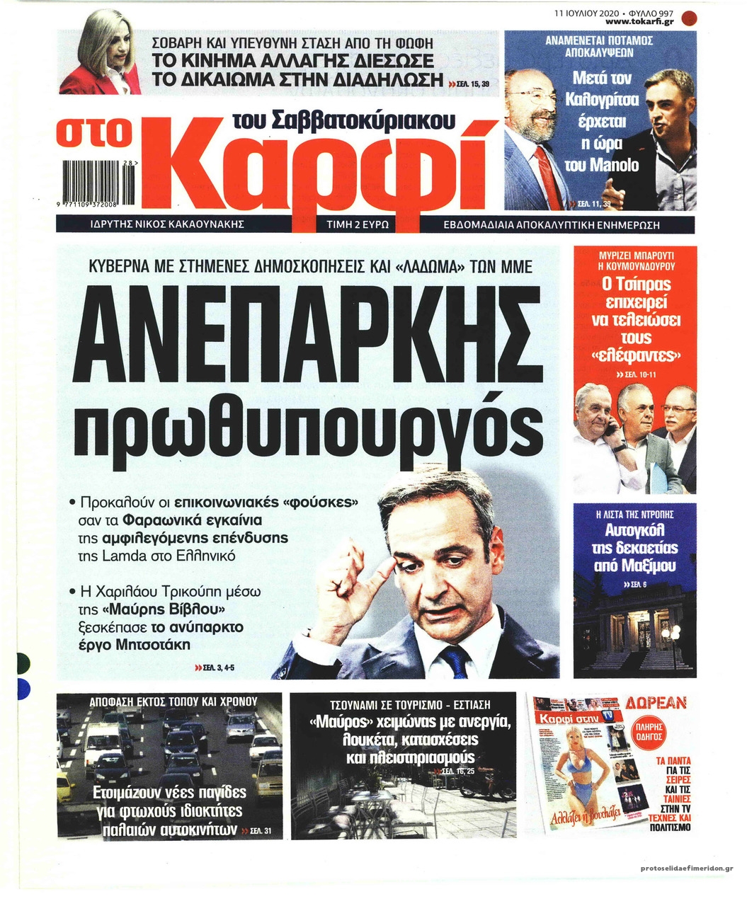 Διαβάστε όλα τα πρωτοσέλιδα των πολιτικών εφημερίδων του Σαββάτου 11 Ιουλίου. Πλήρης ενημέρωση με μια γρήγορη ματιά!