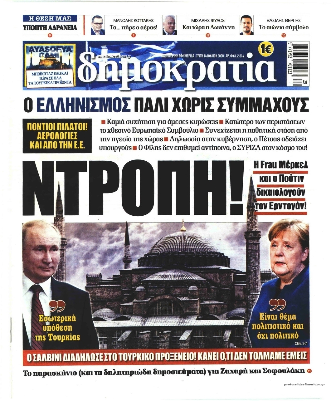 NewsMEDIA Διαβάστε όλα τα πρωτοσέλιδα των πολιτικών εφημερίδων της Τρίτης 14 Ιουλίου 2020 FacebookTwitterEmailViberWhatsAppCopy URLΤυπώνω Διαβάστε όλα τα πρωτοσέλιδα των πολιτικών εφημερίδων της Τρίτης 14 Ιουλίου. Πλήρης ενημέρωση με μια γρήγορη ματιά!