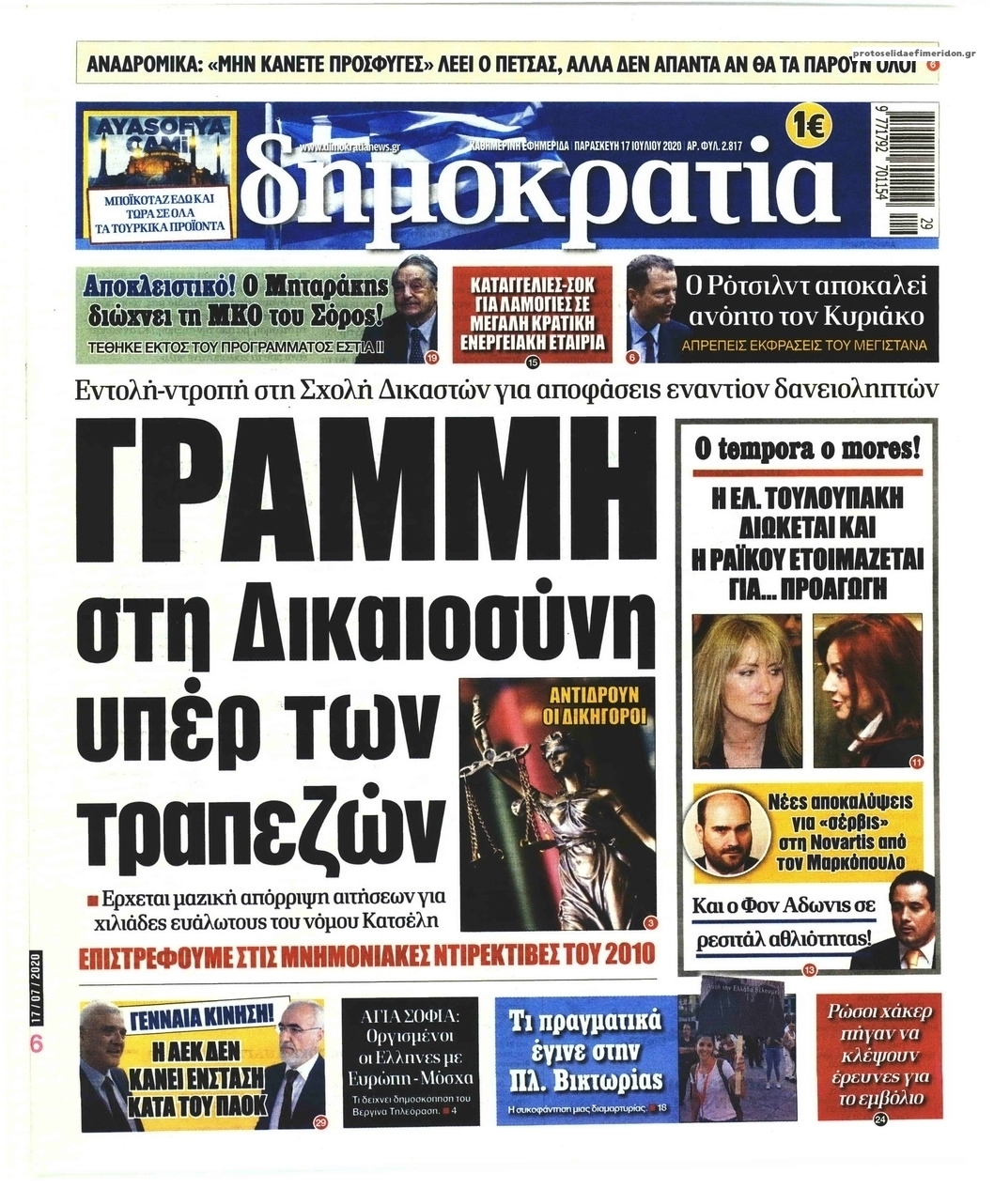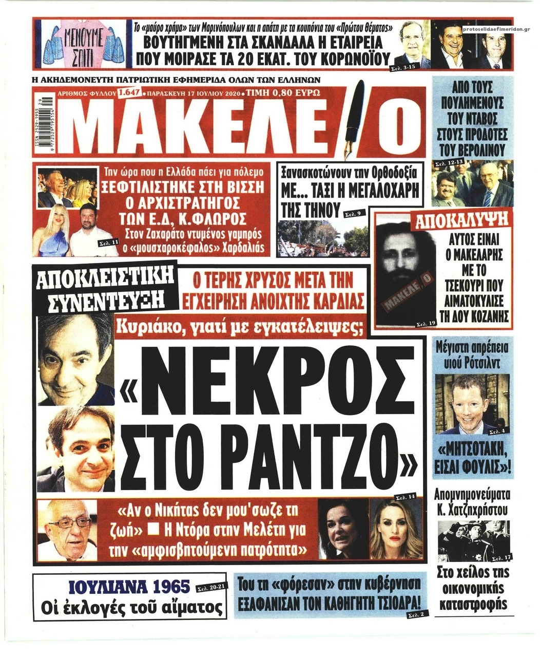NewsMEDIA Διαβάστε όλα τα πρωτοσέλιδα των πολιτικών εφημερίδων της Παρασκευής 17 Ιουλίου 2020 FacebookXEmailViberWhatsAppCopy URLΤυπώνω Διαβάστε όλα τα πρωτοσέλιδα των πολιτικών εφημερίδων της Παρασκευής 17 Ιουλίου. Πλήρης ενημέρωση με μια γρήγορη ματιά!