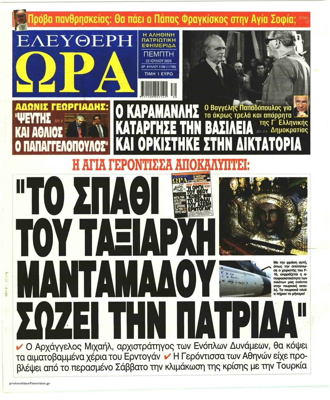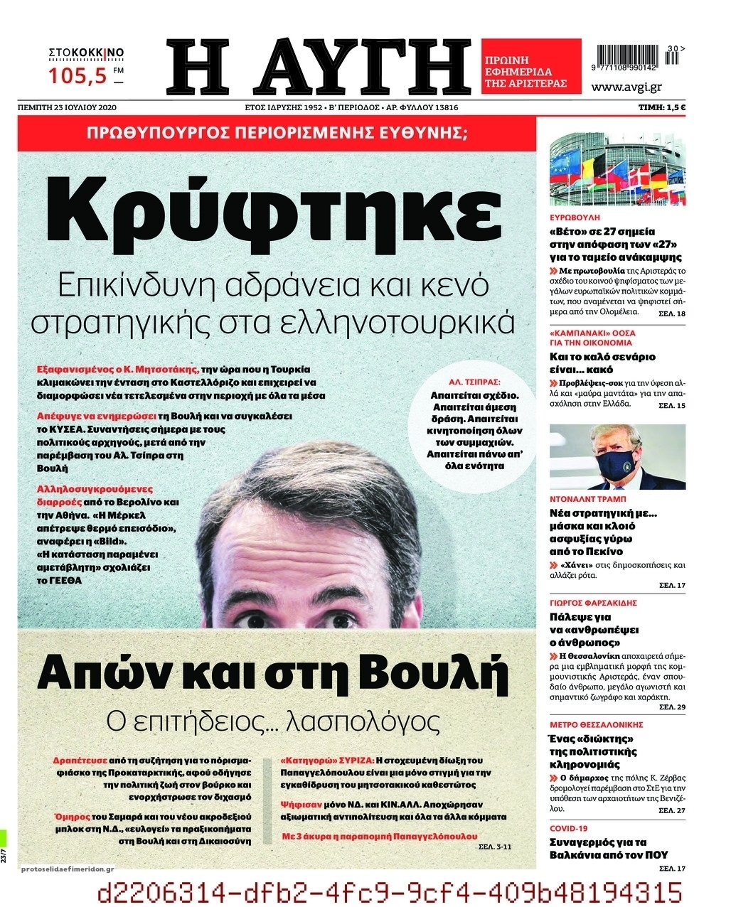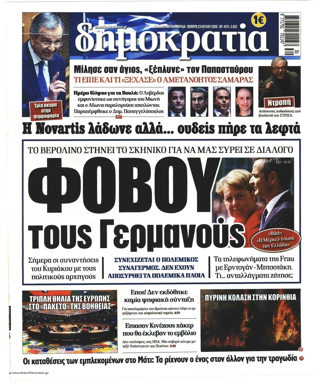 NewsMEDIA Διαβάστε όλα τα πρωτοσέλιδα των πολιτικών εφημερίδων της Πέμπτης 23 Ιουλίου 2020 FacebookXEmailViberWhatsAppCopy URLΤυπώνω Διαβάστε όλα τα πρωτοσέλιδα των πολιτικών εφημερίδων της Πέμπτης 23 Ιουλίου. Πλήρης ενημέρωση με μια γρήγορη ματιά!