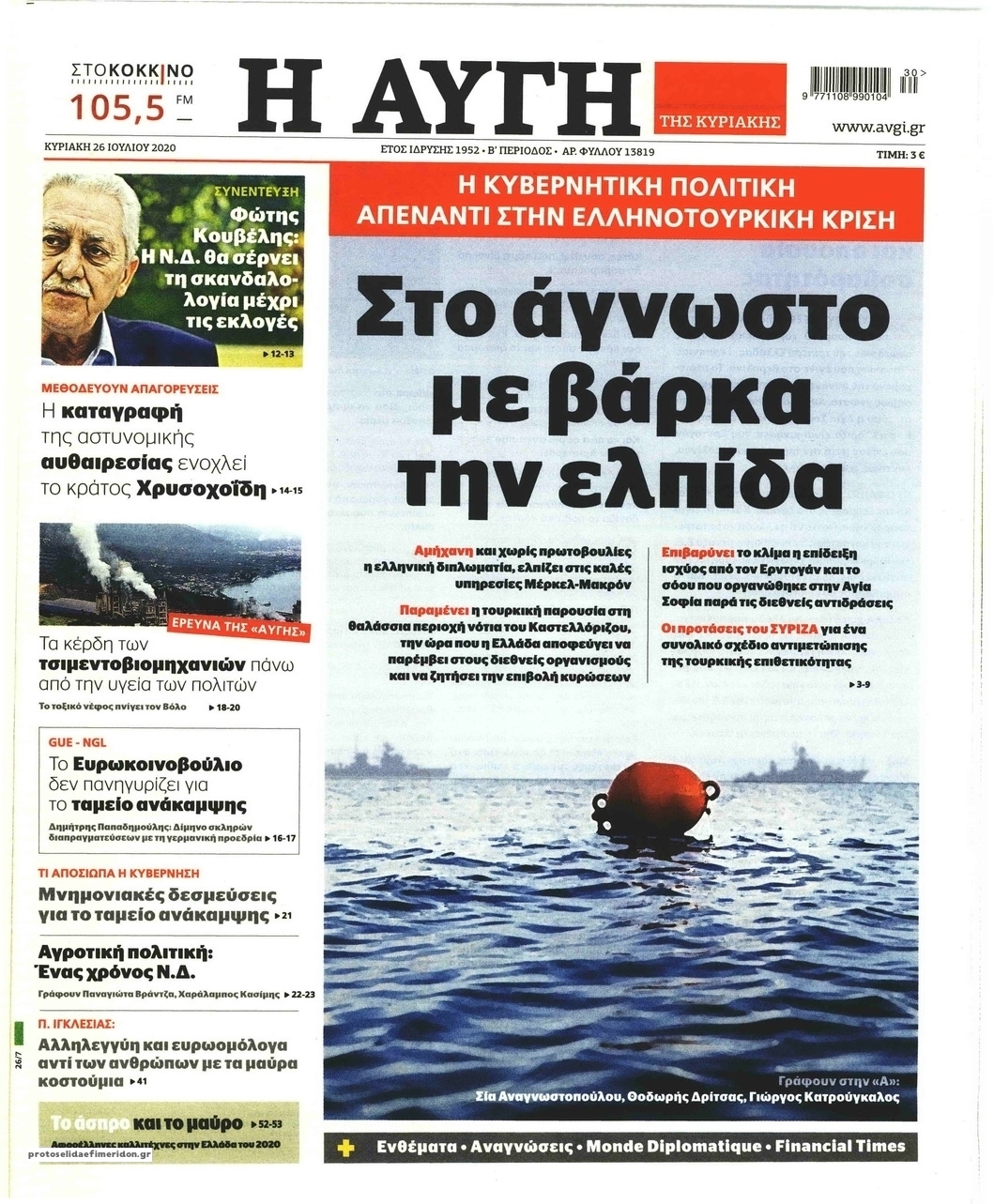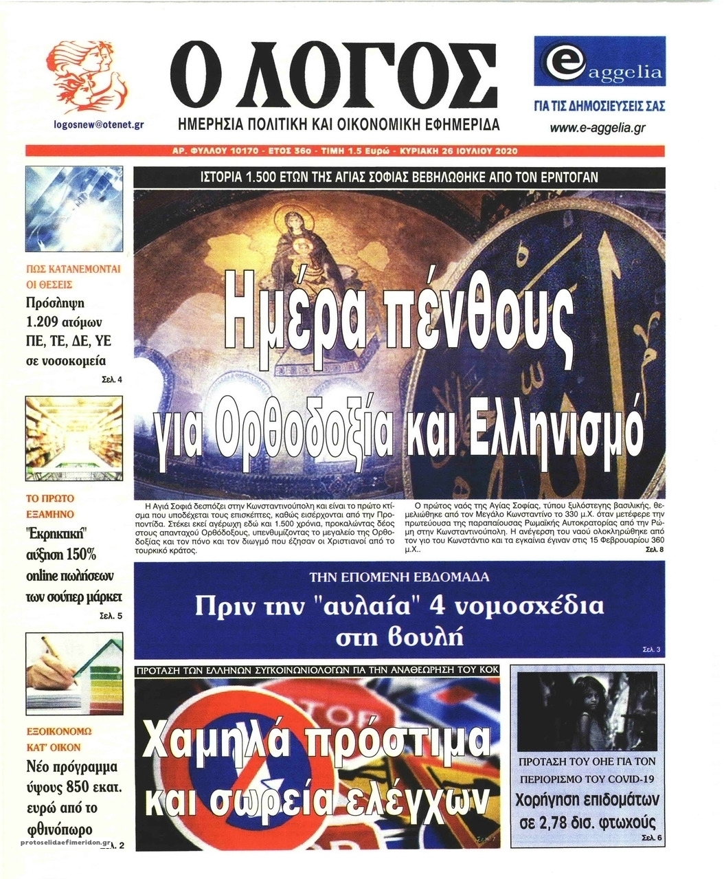 NewsMEDIASLIDER Διαβάστε όλα τα πρωτοσέλιδα των πολιτικών εφημερίδων της Κυριακής 26 Ιουλίου 2020 FacebookTwitterEmailViberWhatsAppCopy URLΤυπώνω Διαβάστε όλα τα πρωτοσέλιδα των πολιτικών εφημερίδων της Κυριακής 26 Ιουλίου. Πλήρης ενημέρωση με μια γρήγορη ματιά!