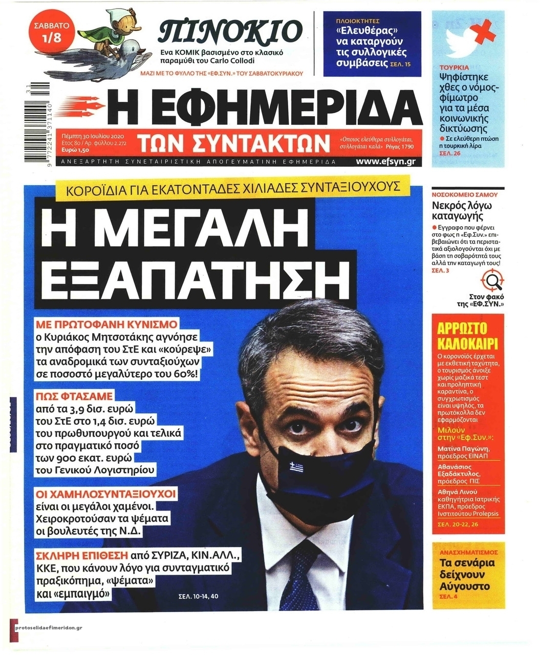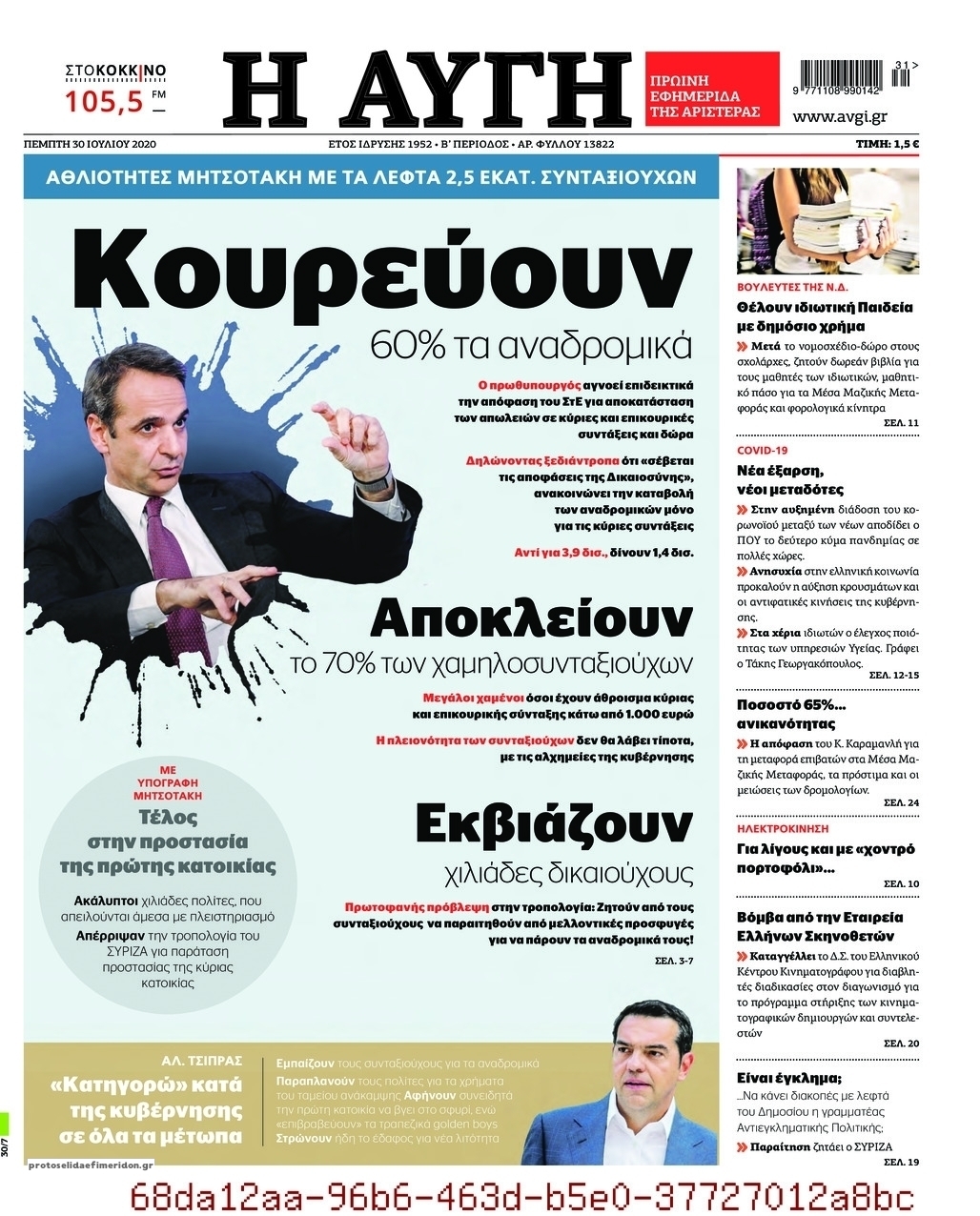 NewsMEDIATV Διαβάστε όλα τα πρωτοσέλιδα των πολιτικών εφημερίδων της Πέμπτης 30 Ιουλίου 2020 FacebookTwitterEmailViberWhatsAppCopy URLΤυπώνω Διαβάστε όλα τα πρωτοσέλιδα των πολιτικών εφημερίδων της Πέμπτης 30 Ιουλίου. Πλήρης ενημέρωση με μια γρήγορη ματιά!