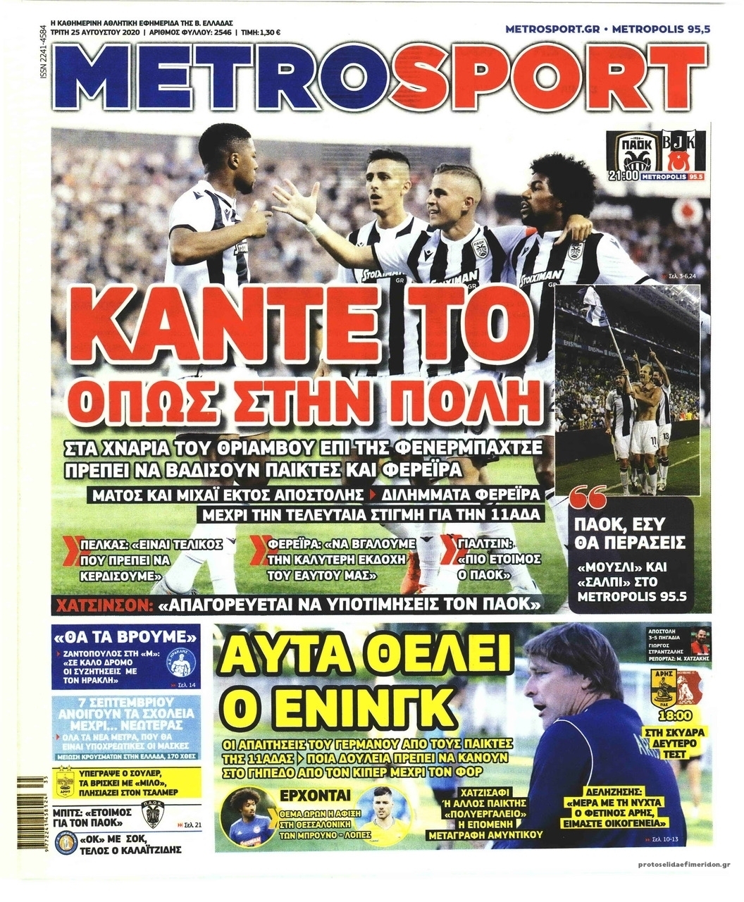 NewsMEDIA Διαβάστε όλα τα πρωτοσέλιδα των αθλητικών εφημερίδων της Τρίτης 25 Αυγούστου 2020 FacebookXEmailViberWhatsAppCopy URLΤυπώνω Διαβάστε όλα τα πρωτοσέλιδα των αθλητικών εφημερίδων της Τρίτης 25 Αυγούστου. Πλήρης ενημέρωση με μια γρήγορη ματιά!