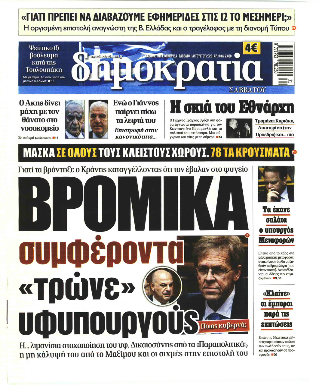 NewsMEDIASLIDER Διαβάστε όλα τα πρωτοσέλιδα των πολιτικών εφημερίδων του Σαββάτου 1 Αυγούστου 2020 FacebookTwitterEmailViberWhatsAppCopy URLΤυπώνω Διαβάστε όλα τα πρωτοσέλιδα των πολιτικών εφημερίδων του Σαββάτου 1η Αυγούστου. Πλήρης ενημέρωση με μια γρήγορη ματιά!