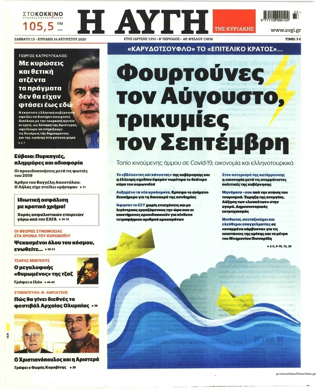 NewsMEDIASLIDER Διαβάστε όλα τα πρωτοσέλιδα των πολιτικών εφημερίδων του Σαββατοκύριακου 16 Αυγούστου 2020 FacebookXEmailViberWhatsAppCopy URLΤυπώνω Διαβάστε όλα τα πρωτοσέλιδα των πολιτικών εφημερίδων του Σαββατοκύριακου 15 και 16 Αυγούστου. Πλήρης ενημέρωση με μια γρήγορη ματιά!