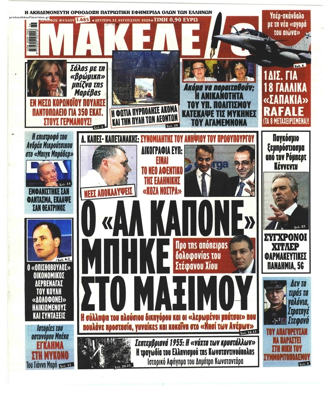 NewsMEDIA Διαβάστε όλα τα πρωτοσέλιδα των πολιτικών εφημερίδων της Δευτέρας 31 Αυγούστου 2020 FacebookTwitterEmailViberWhatsAppCopy URLΤυπώνω Διαβάστε όλα τα πρωτοσέλιδα των πολιτικών εφημερίδων της Δευτέρας 31 Αυγούστου. Πλήρης ενημέρωση με μια γρήγορη ματιά!