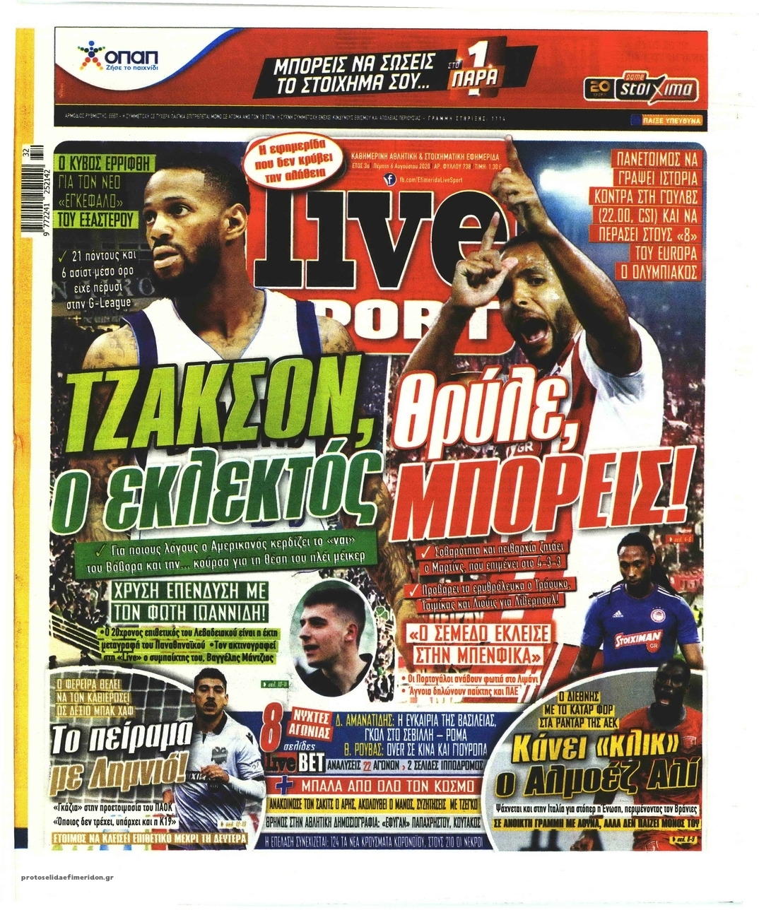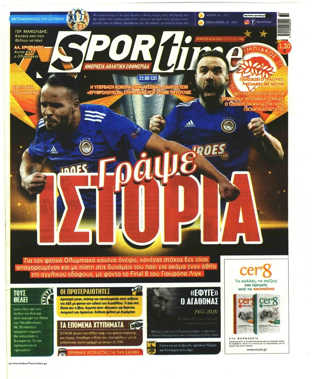 NewsMEDIA Διαβάστε όλα τα πρωτοσέλιδα των αθλητικών εφημερίδων της Πέμπτης 6 Αυγούστου 2020 FacebookXEmailViberWhatsAppCopy URLΤυπώνω Διαβάστε όλα τα πρωτοσέλιδα των αθλητικών εφημερίδων της Πέμπτης 6 Αυγούστου. Πλήρης ενημέρωση με μια γρήγορη ματιά!