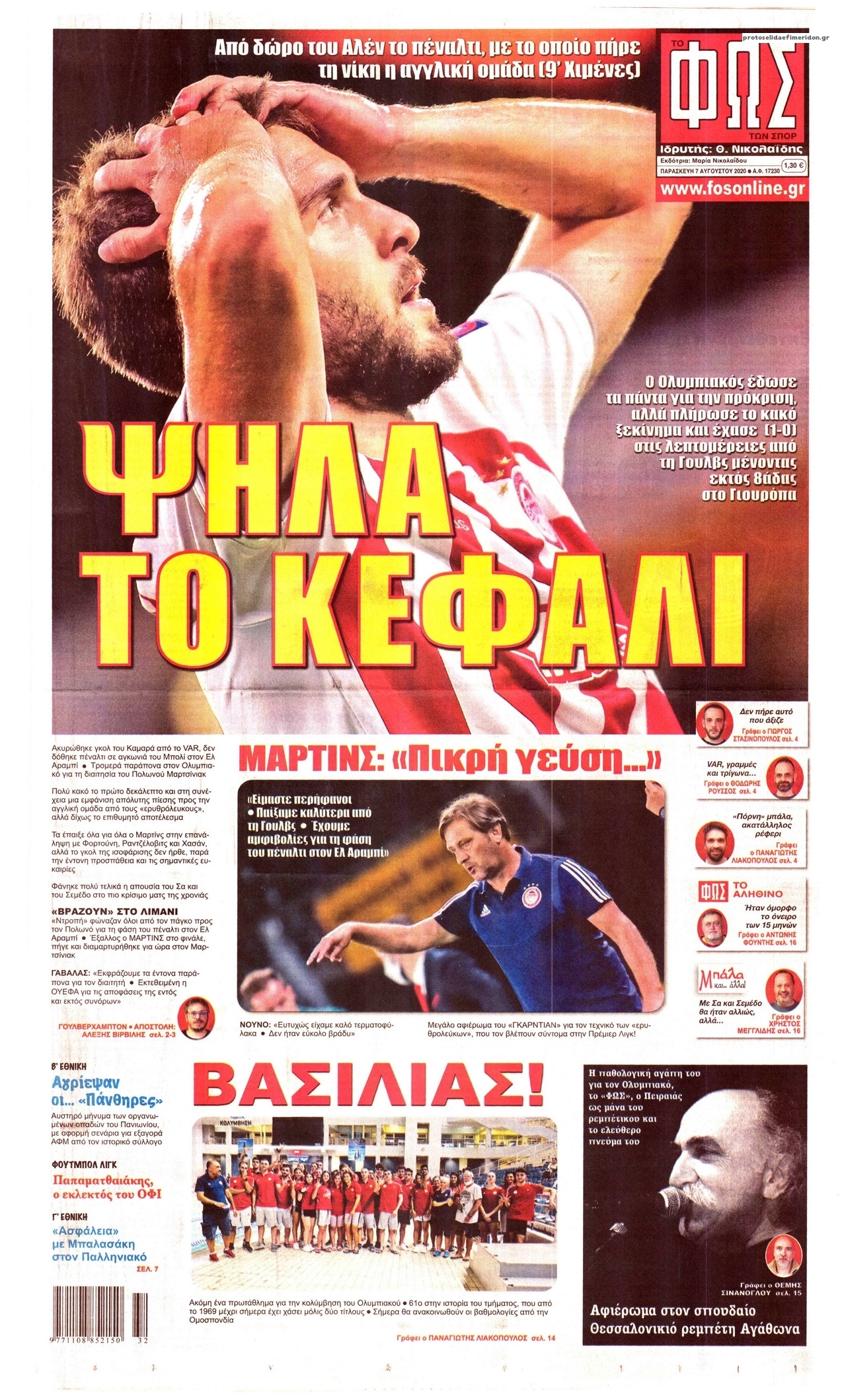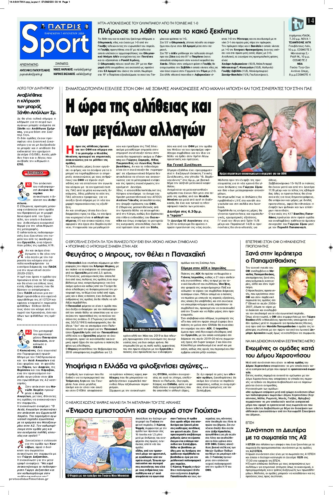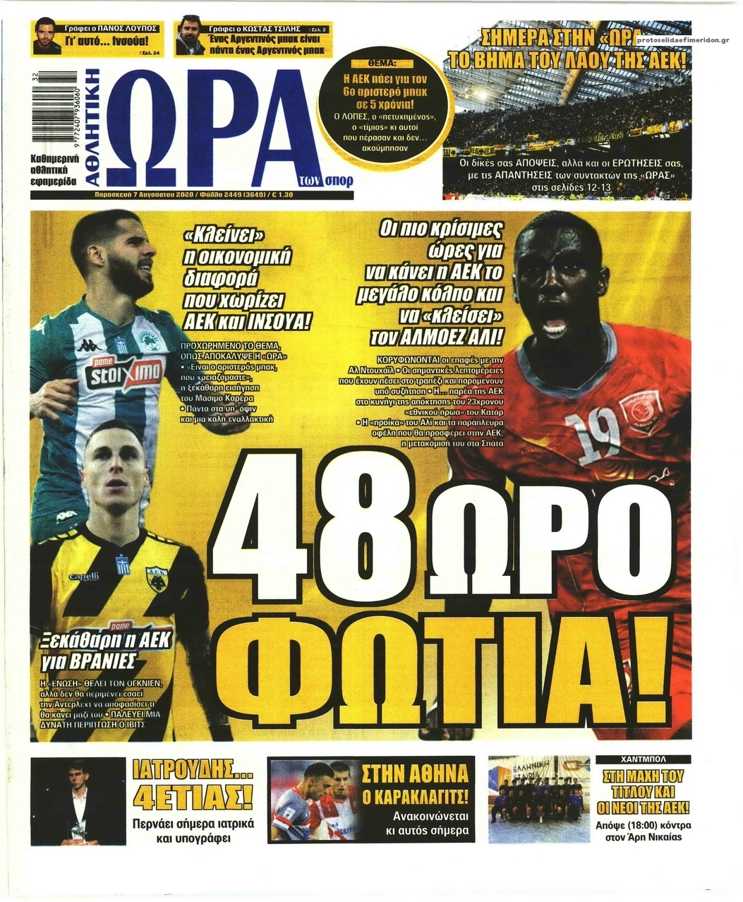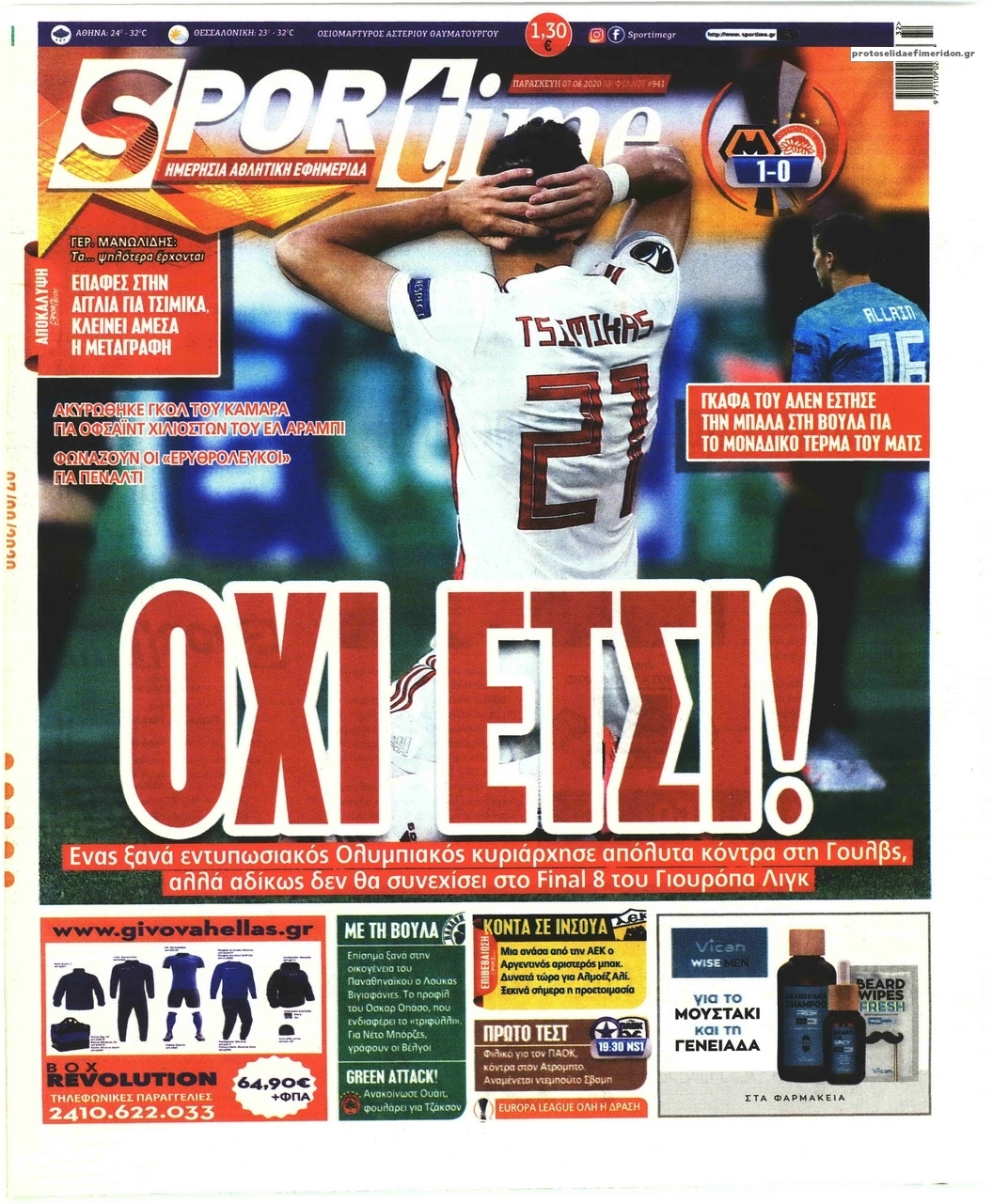 NewsMEDIA Διαβάστε όλα τα πρωτοσέλιδα των αθλητικών εφημερίδων της Παρασκευής 7 Αυγούστου 2020 FacebookXEmailViberWhatsAppCopy URLΤυπώνω Διαβάστε όλα τα πρωτοσέλιδα των αθλητικών εφημερίδων της Παρασκευής 7 Αυγούστου. Πλήρης ενημέρωση με μια γρήγορη ματιά!