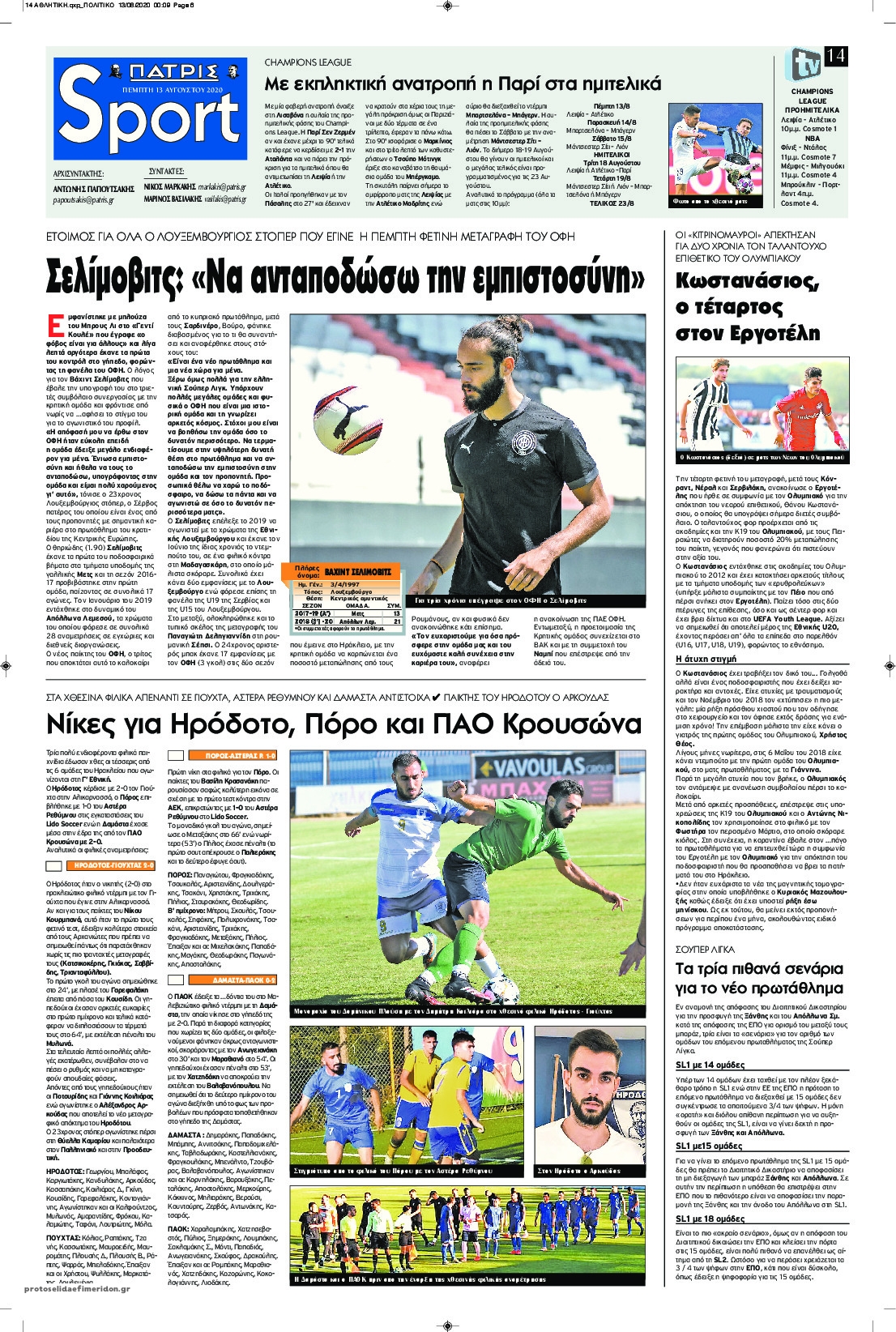 NewsMEDIA Διαβάστε όλα τα πρωτοσέλιδα των αθλητικών εφημερίδων της Πέμπτης 13 Αυγούστου 2020 FacebookXEmailViberWhatsAppCopy URLΤυπώνω Διαβάστε όλα τα πρωτοσέλιδα των αθλητικών εφημερίδων της Πέμπτης 13 Αυγούστου. Πλήρης ενημέρωση με μια γρήγορη ματιά!