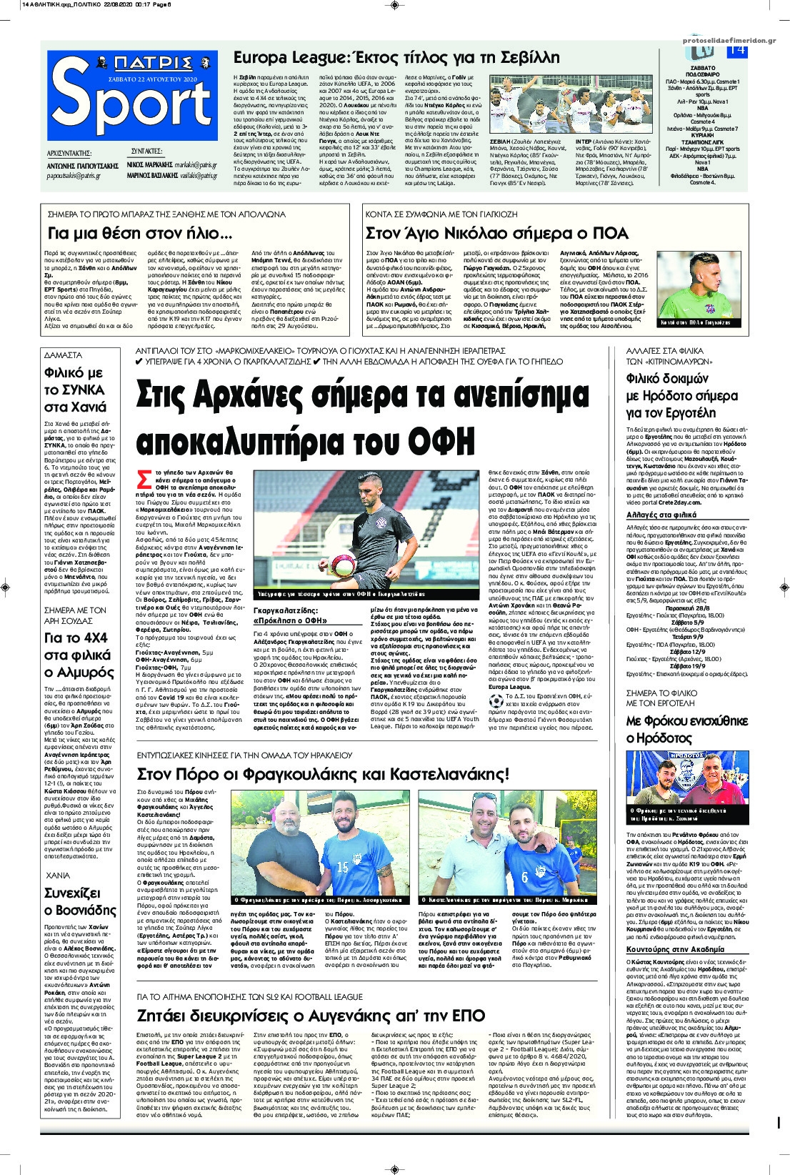 NewsMEDIA Διαβάστε όλα τα πρωτοσέλιδα των αθλητικών εφημερίδων του Σαββάτου 22 Αυγούστου 2020 FacebookTwitterEmailViberWhatsAppCopy URLΤυπώνω Διαβάστε όλα τα πρωτοσέλιδα των αθλητικών εφημερίδων του Σαββάτου 22 Αυγούστου. Πλήρης ενημέρωση με μια γρήγορη ματιά!
