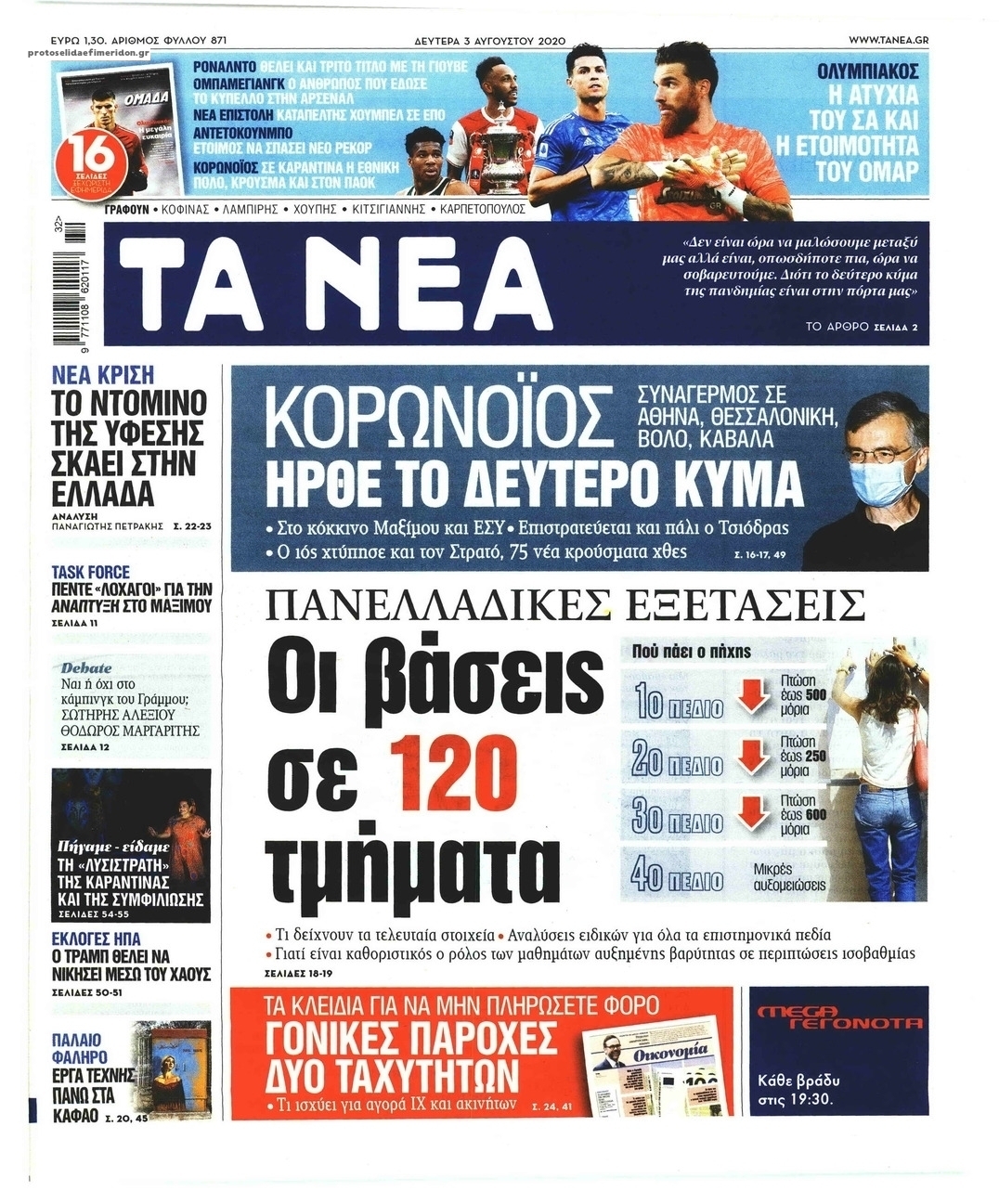 NewsMEDIASLIDER Διαβάστε όλα τα πρωτοσέλιδα των πολιτικών εφημερίδων της Δευτέρας 3 Αυγούστου 2020 FacebookXEmailViberWhatsAppCopy URLΤυπώνω Διαβάστε όλα τα πρωτοσέλιδα των πολιτικών εφημερίδων της Δευτέρας 3 Αυγούστου. Πλήρης ενημέρωση με μια γρήγορη ματιά!