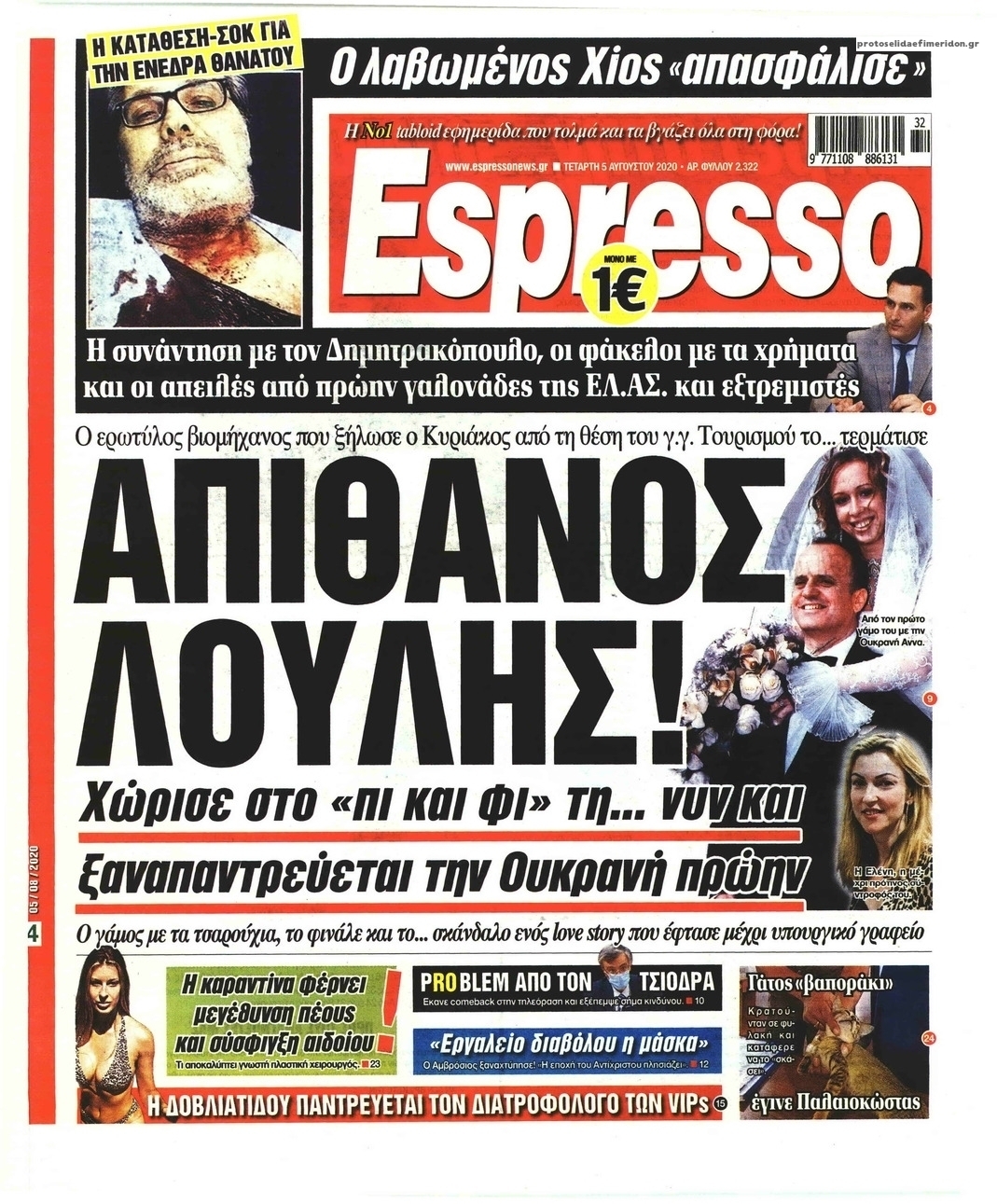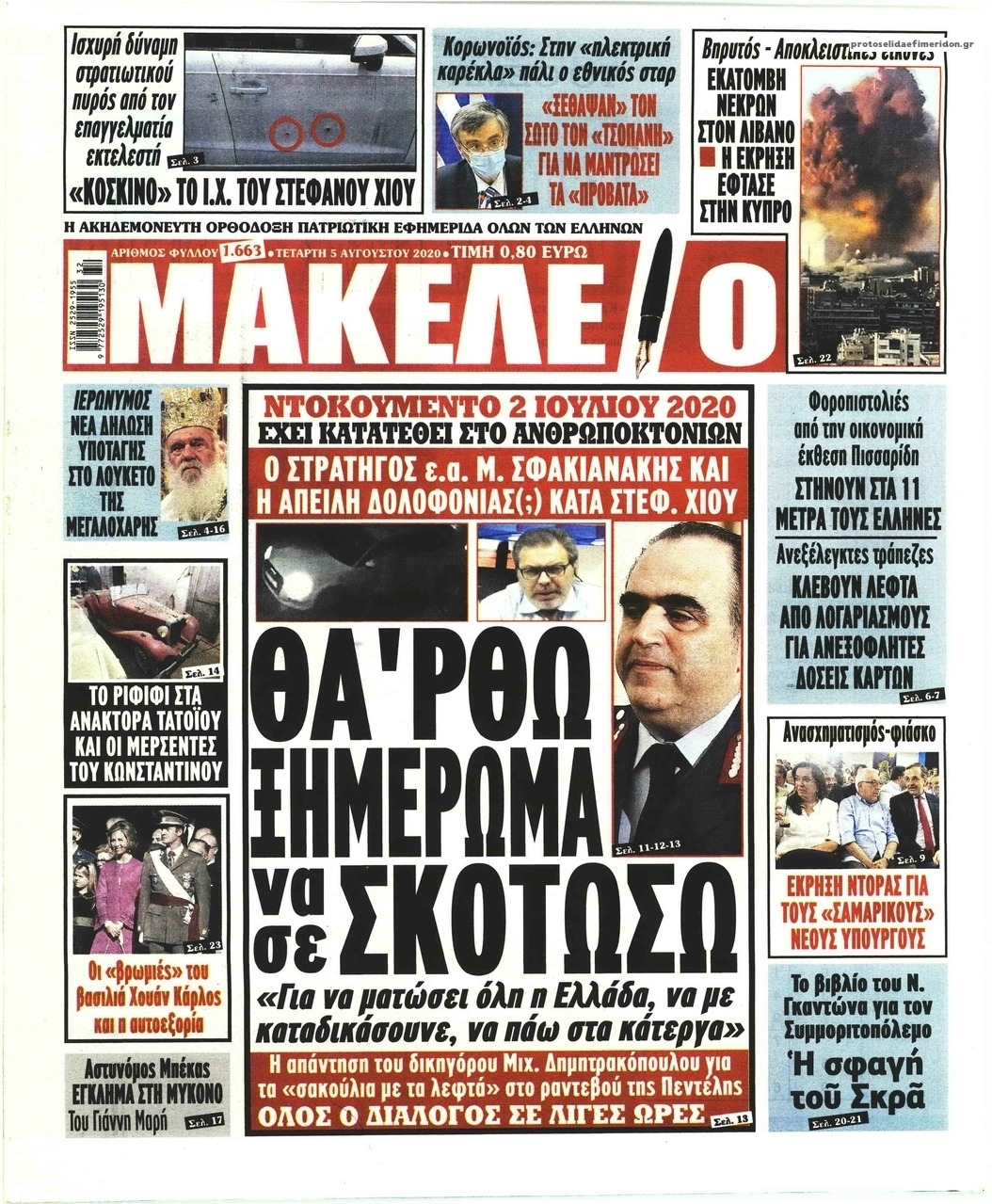 NewsMEDIA Διαβάστε όλα τα πρωτοσέλιδα των πολιτικών εφημερίδων της Τετάρτης 5 Αυγούστου 2020 FacebookTwitterEmailViberWhatsAppCopy URLΤυπώνω Διαβάστε όλα τα πρωτοσέλιδα των πολιτικών εφημερίδων της Τετάρτης 5 Αυγούστου. Πλήρης ενημέρωση με μια γρήγορη ματιά!