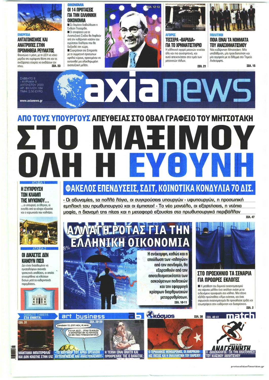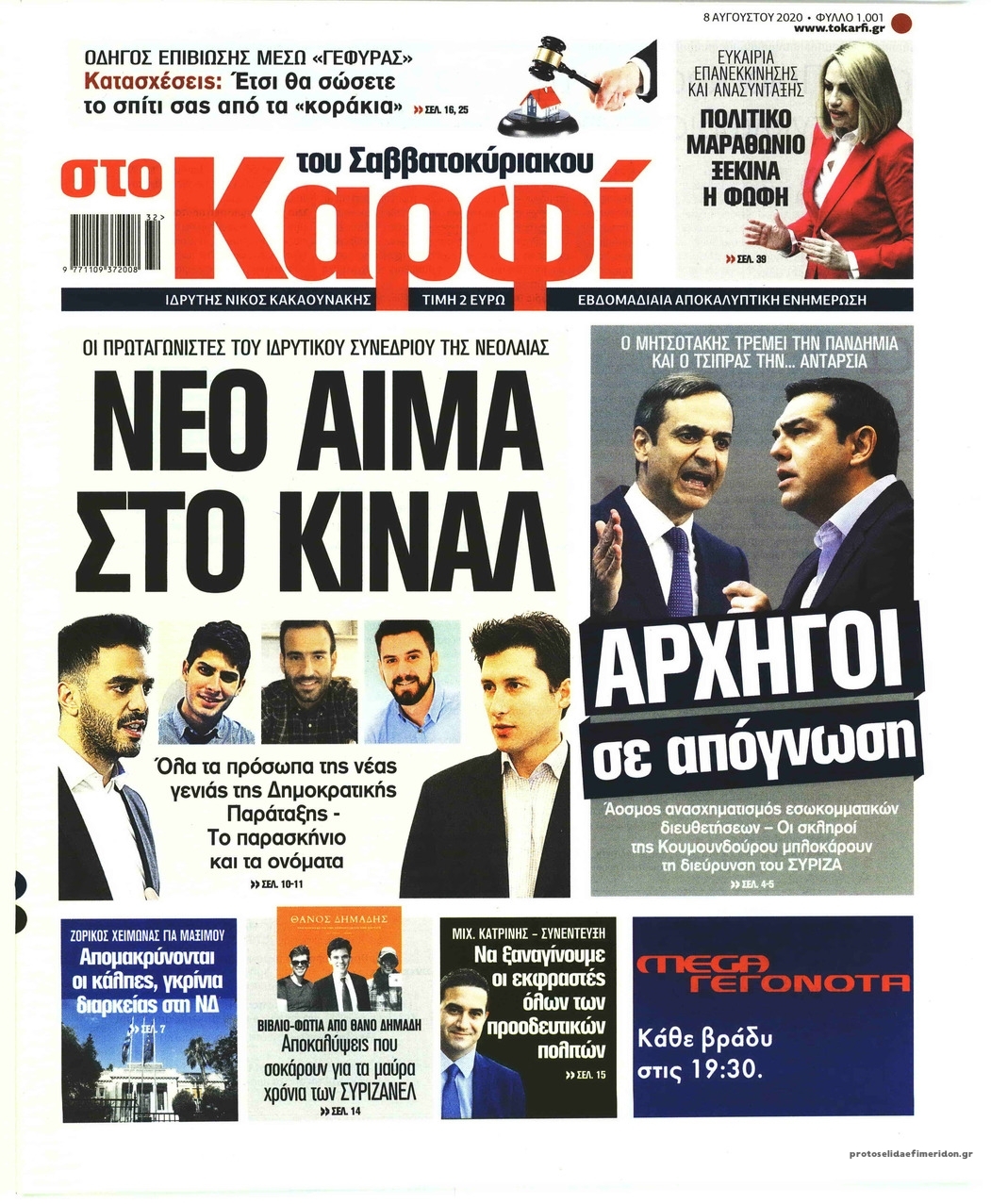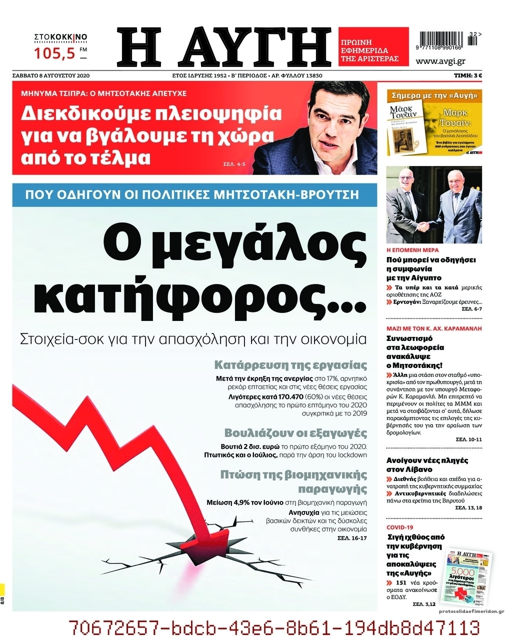 NewsMEDIA Διαβάστε όλα τα πρωτοσέλιδα των πολιτικών εφημερίδων της Κυριακής 8 Αυγούστου 2020 FacebookTwitterEmailViberWhatsAppCopy URLΤυπώνω Διαβάστε όλα τα πρωτοσέλιδα των πολιτικών εφημερίδων της Κυριακής 8 Αυγούστου. Πλήρης ενημέρωση με μια γρήγορη ματιά!