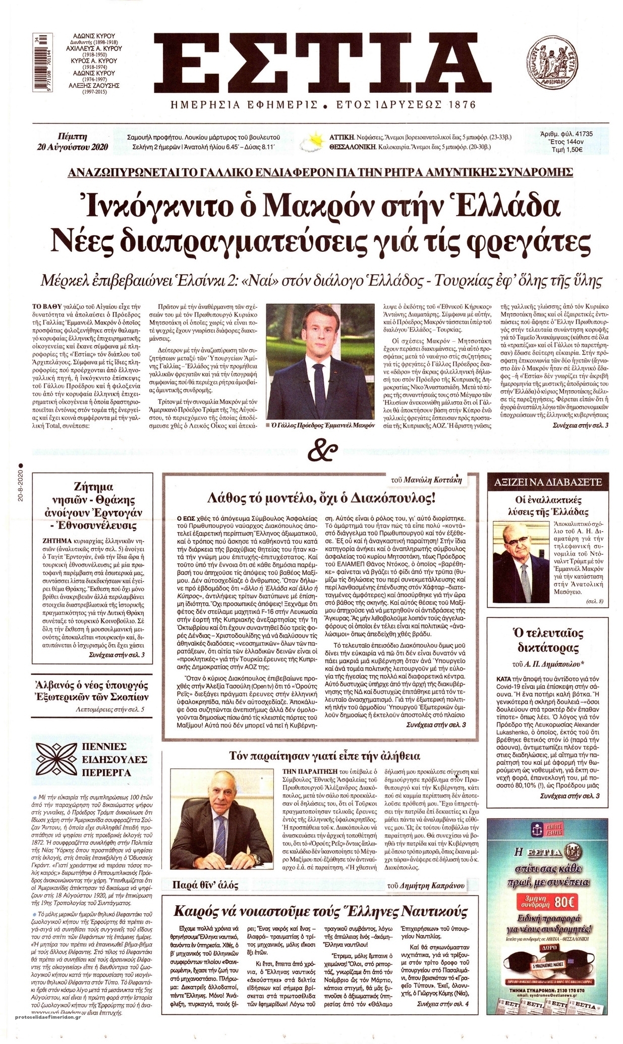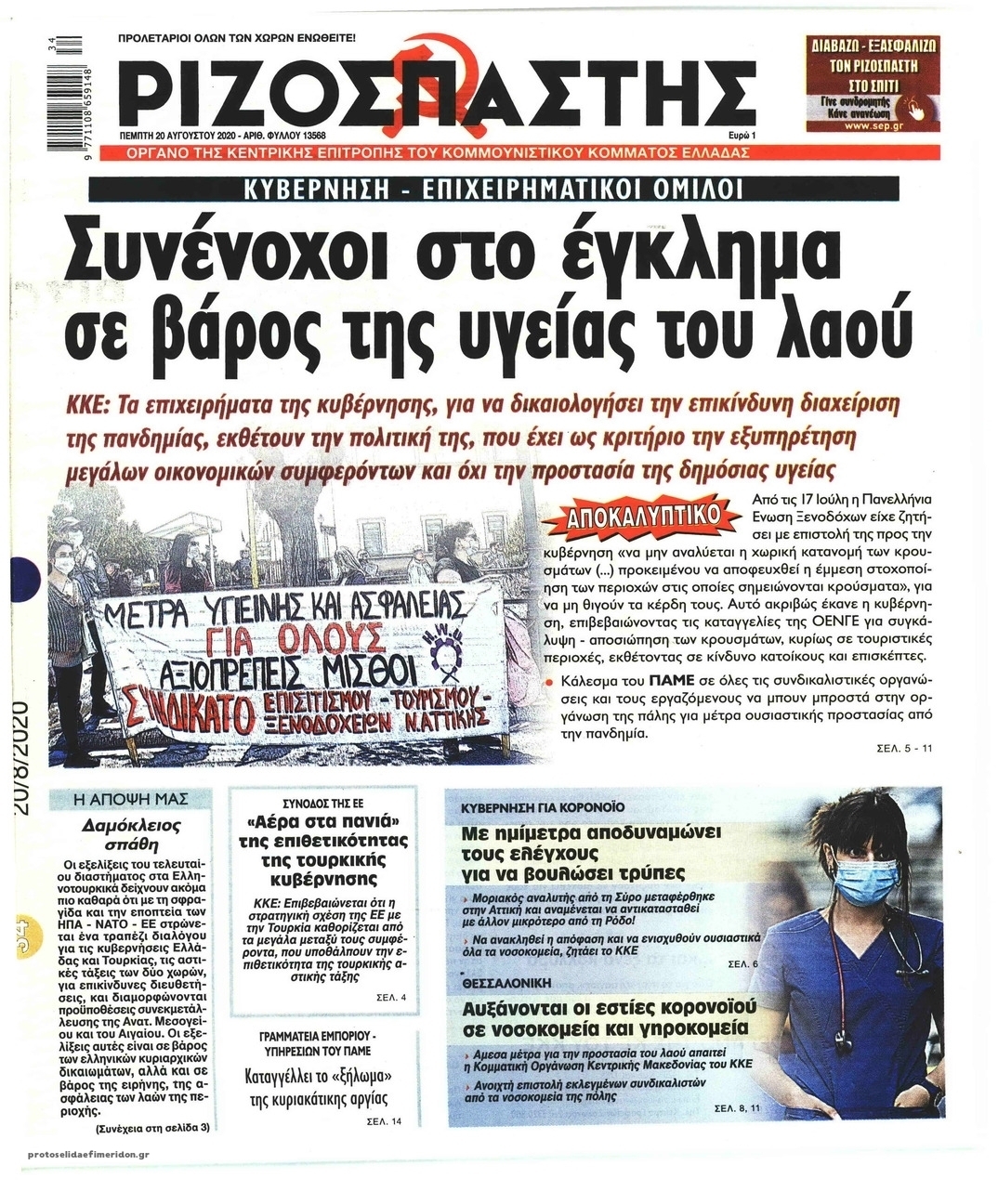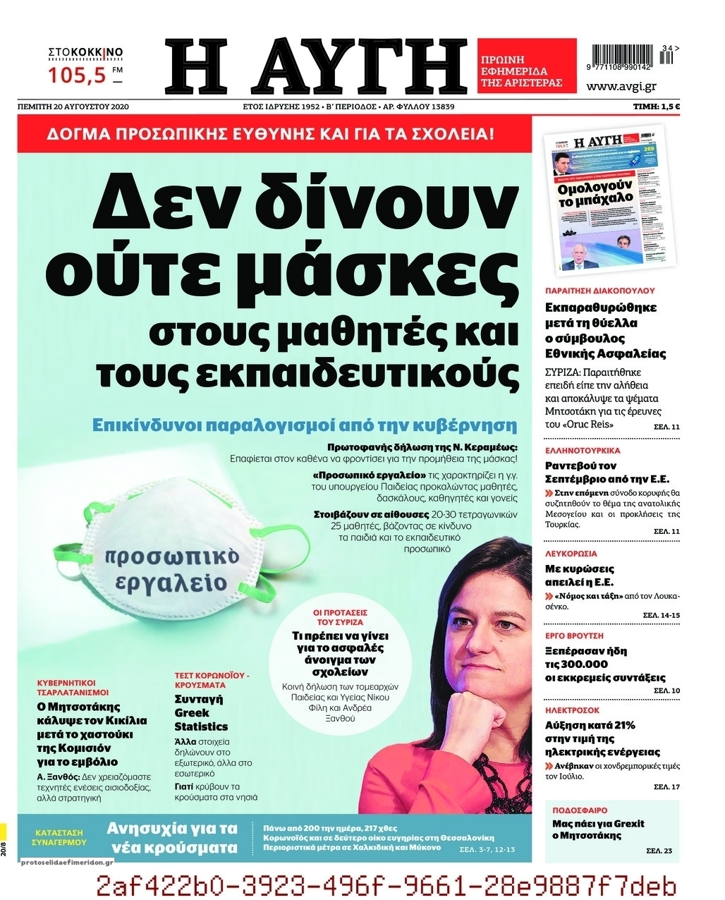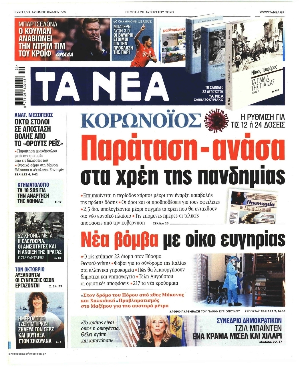 NewsMEDIASLIDER Διαβάστε όλα τα πρωτοσέλιδα των πολιτικών εφημερίδων της Πέμπτης 20 Αυγούστου 2020 FacebookTwitterEmailViberWhatsAppCopy URLΤυπώνω Διαβάστε όλα τα πρωτοσέλιδα των πολιτικών εφημερίδων της Πέμπτης 20 Αυγούστου. Πλήρης ενημέρωση με μια γρήγορη ματιά!