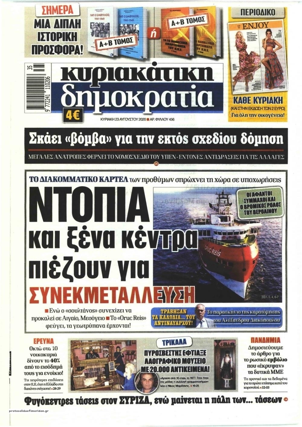 NewsMEDIASLIDER Διαβάστε όλα τα πρωτοσέλιδα των πολιτικών εφημερίδων της Κυριακής 23 Αυγούστου 2020 FacebookTwitterEmailViberWhatsAppCopy URLΤυπώνω Διαβάστε όλα τα πρωτοσέλιδα των πολιτικών εφημερίδων της Κυριακής 23 Αυγούστου. Πλήρης ενημέρωση με μια γρήγορη ματιά!