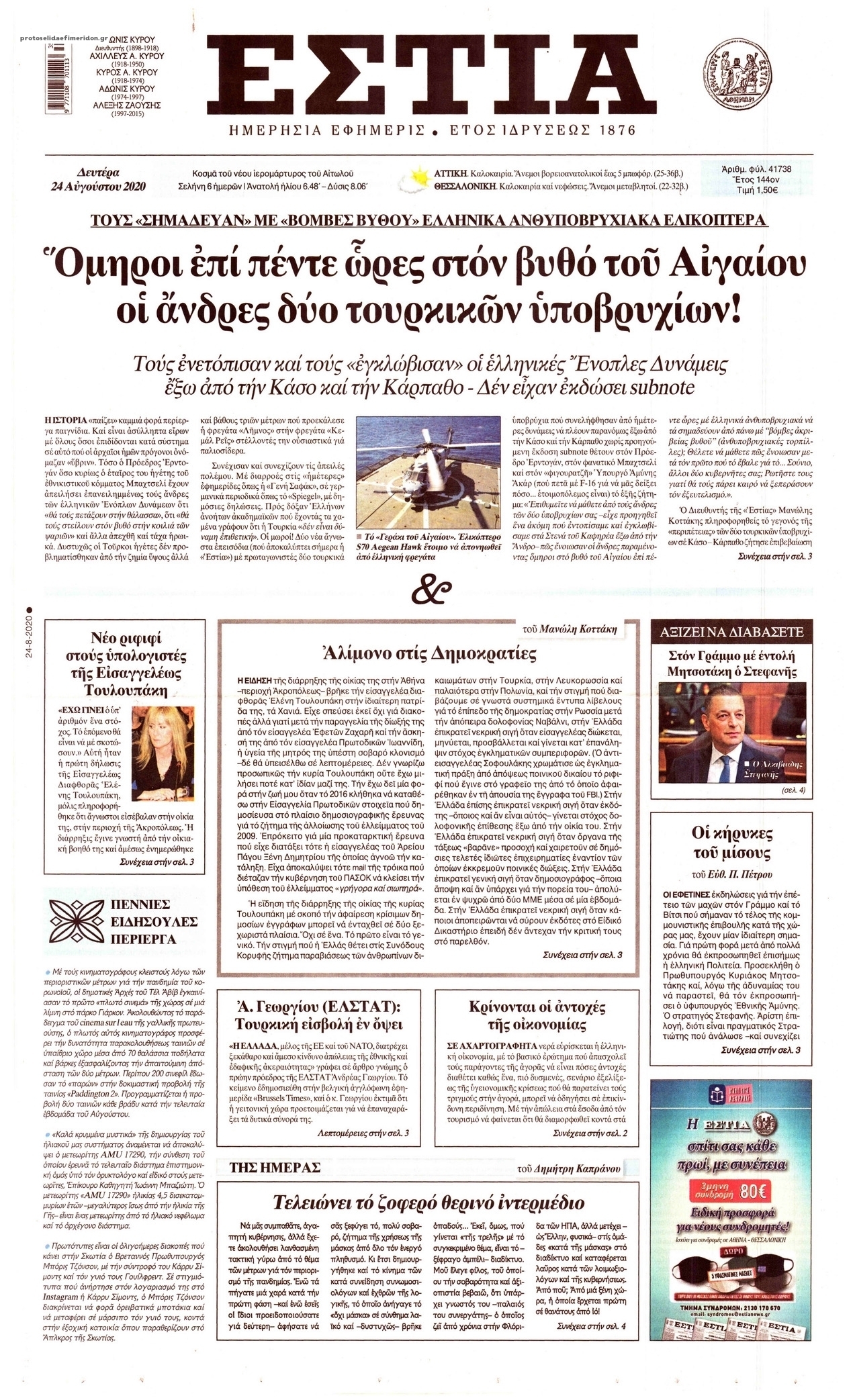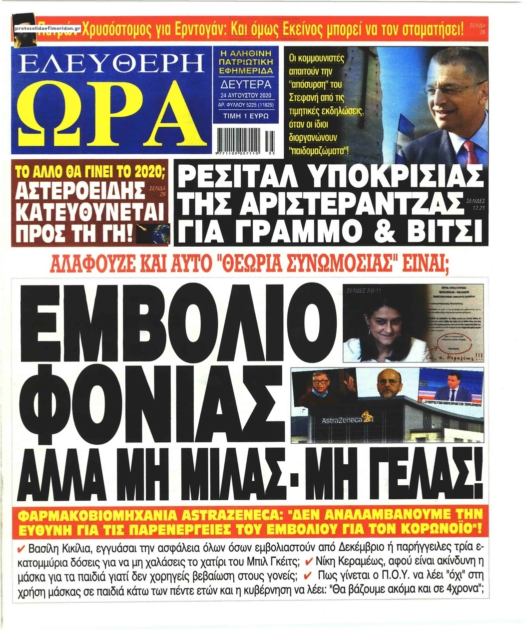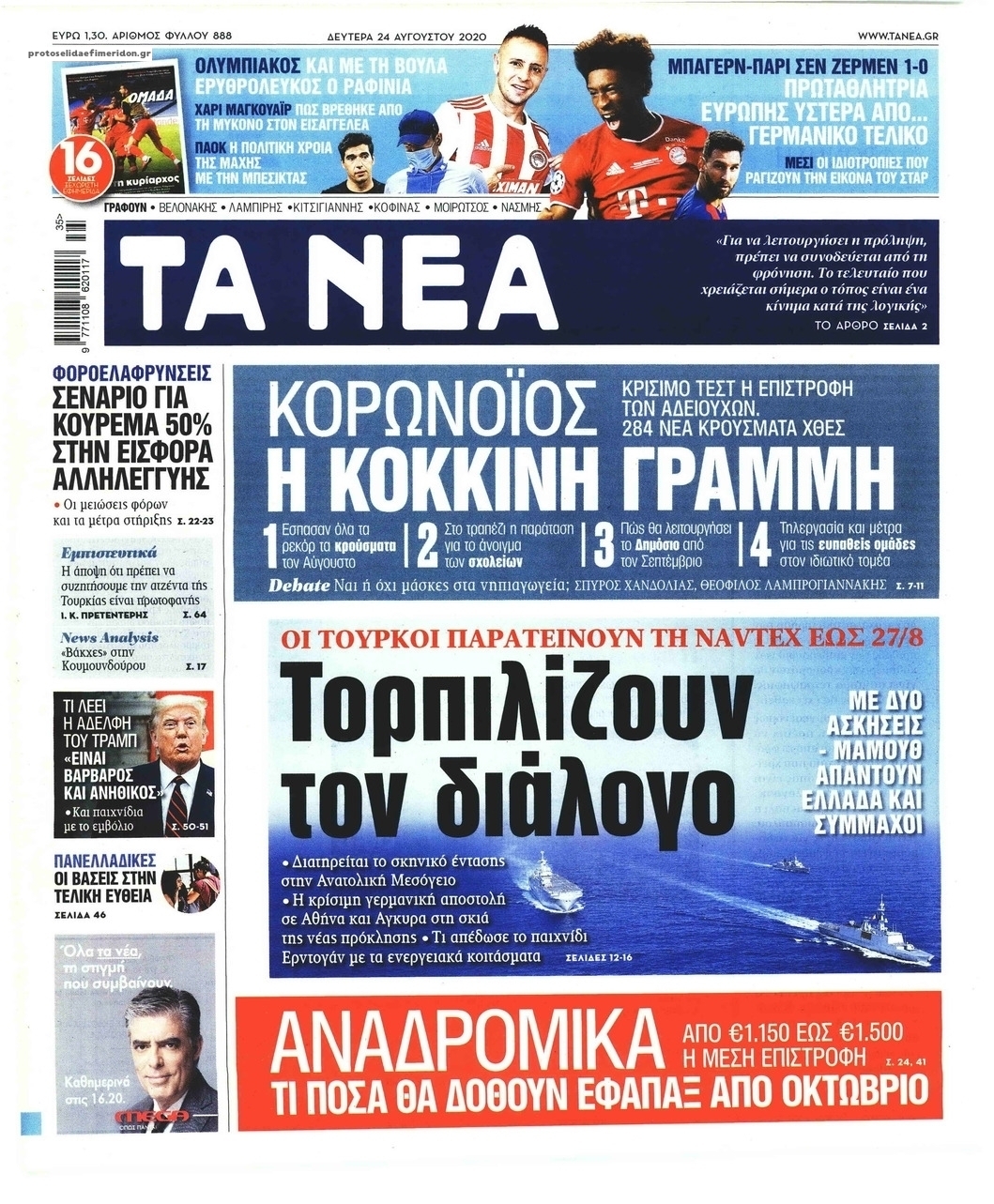 NewsMEDIA Διαβάστε όλα τα πρωτοσέλιδα των πολιτικών εφημερίδων της Δευτέρας 24 Αυγούστου 2020 FacebookTwitterEmailViberWhatsAppCopy URLΤυπώνω Διαβάστε όλα τα πρωτοσέλιδα των πολιτικών εφημερίδων της Δευτέρας 24 Αυγούστου. Πλήρης ενημέρωση με μια γρήγορη ματιά!