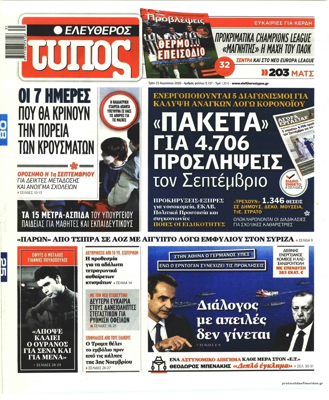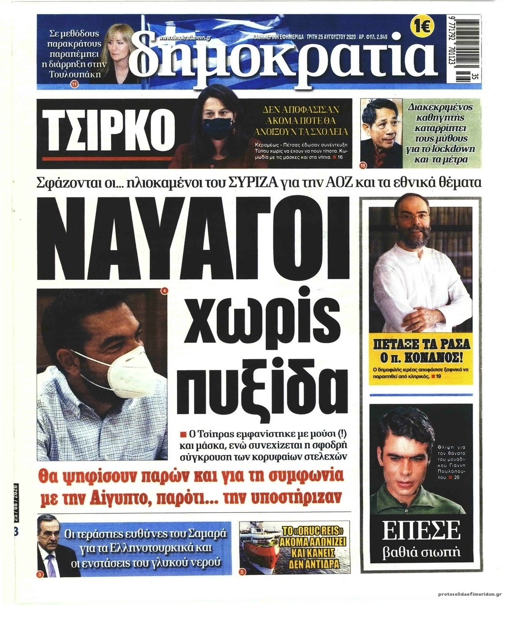 Διαβάστε όλα τα πρωτοσέλιδα των πολιτικών εφημερίδων της Τρίτης 25 Αυγούστου. Πλήρης ενημέρωση με μια γρήγορη ματιά!