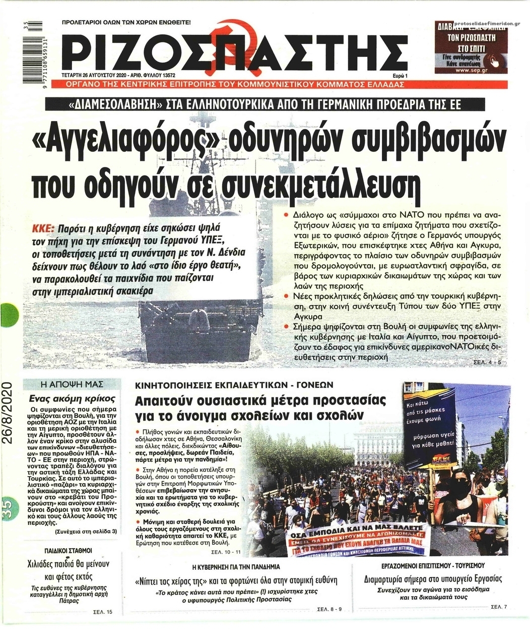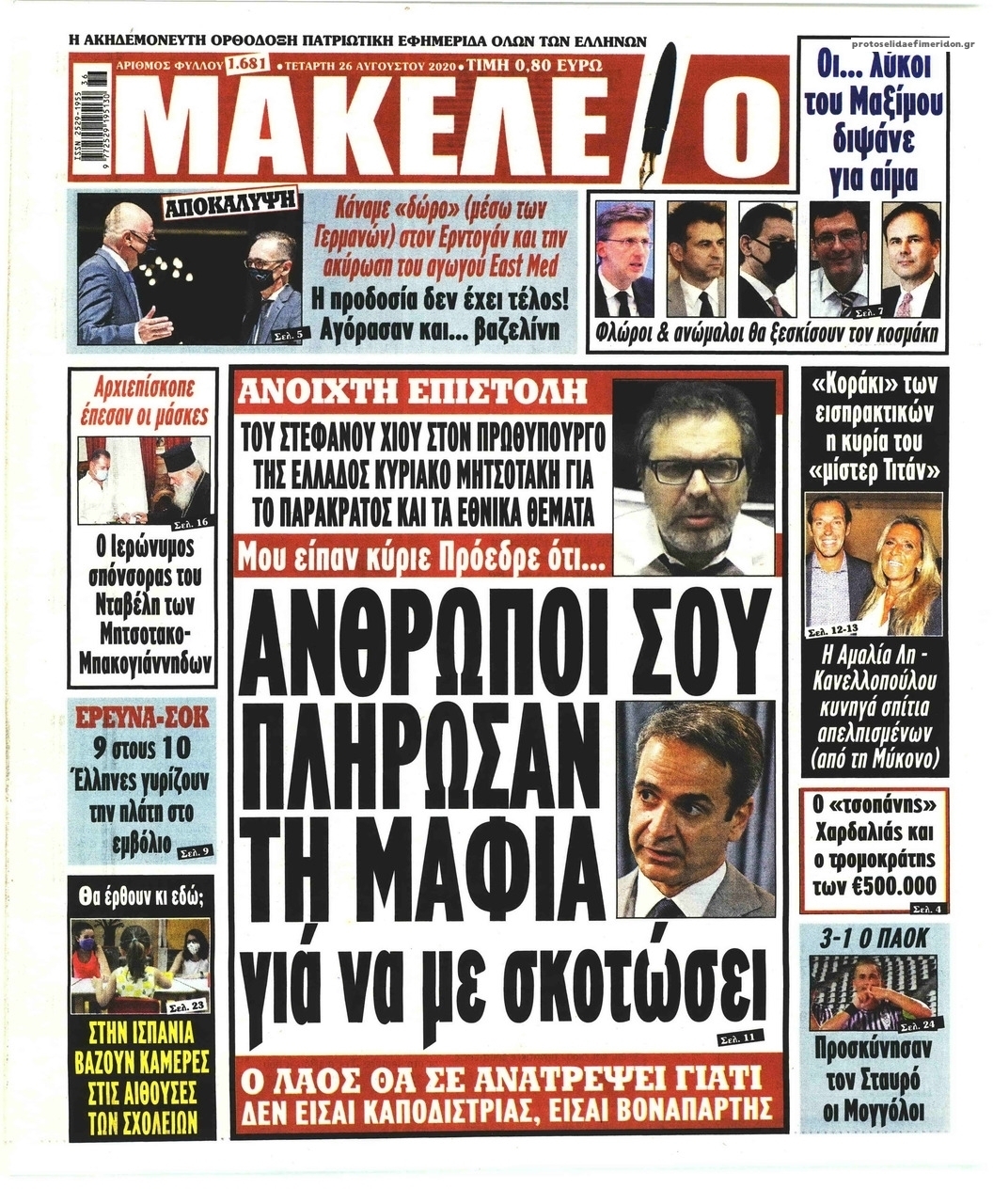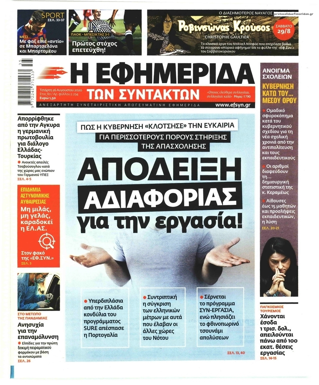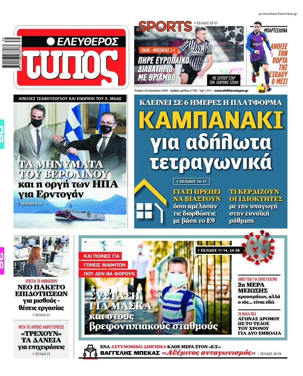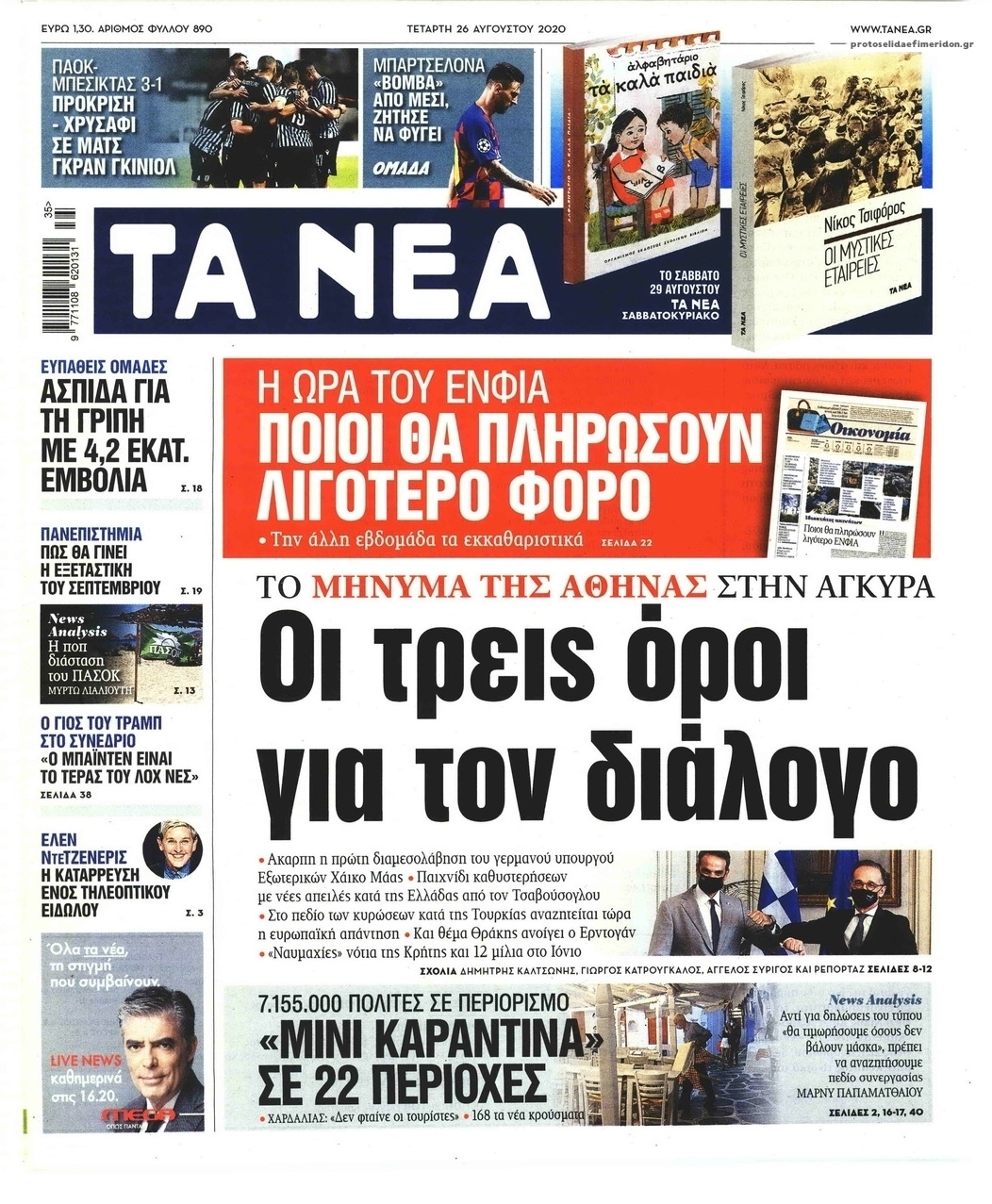 NewsMEDIASLIDER Διαβάστε όλα τα πρωτοσέλιδα των πολιτικών εφημερίδων της Τετάρτης 26 Αυγούστου 2020 FacebookTwitterEmailViberWhatsAppCopy URLΤυπώνω Διαβάστε όλα τα πρωτοσέλιδα των πολιτικών εφημερίδων της Τετάρτης 26 Αυγούστου. Πλήρης ενημέρωση με μια γρήγορη ματιά!