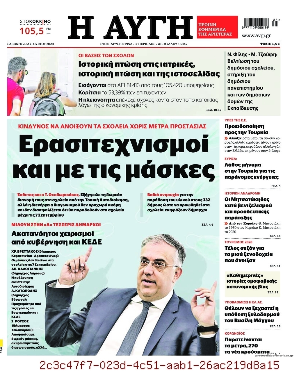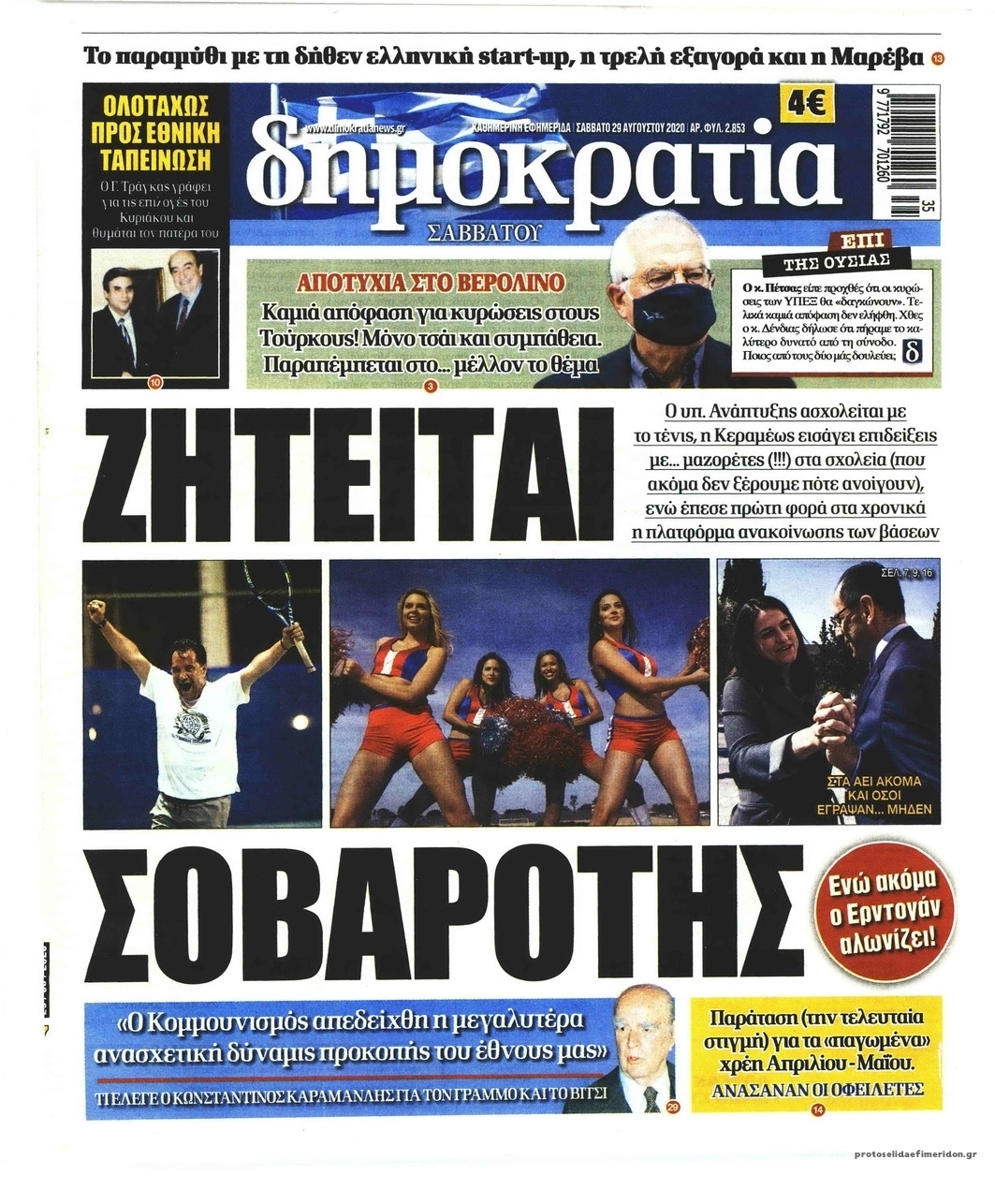 NewsMEDIASLIDER Διαβάστε όλα τα πρωτοσέλιδα των πολιτικών εφημερίδων του Σαββάτου 29 Αυγούστου 2020 FacebookXEmailViberWhatsAppCopy URLΤυπώνω Διαβάστε όλα τα πρωτοσέλιδα των πολιτικών εφημερίδων του Σαββάτου 29 Αυγούστου. Πλήρης ενημέρωση με μια γρήγορη ματιά!