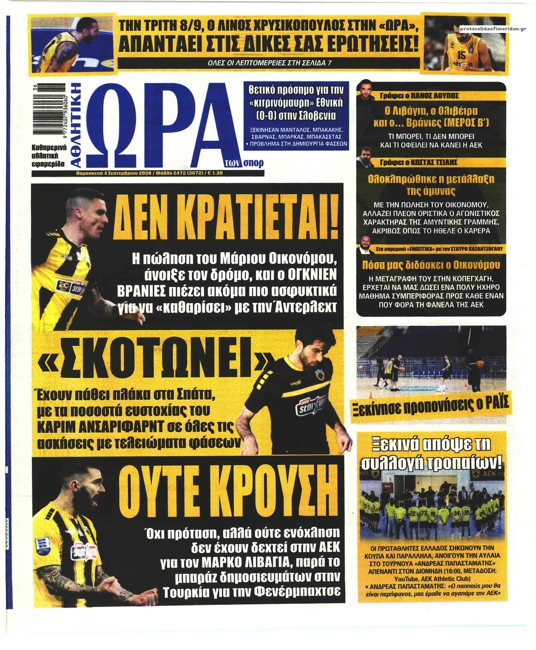 Διαβάστε όλα τα πρωτοσέλιδα των αθλητικών εφημερίδων της Παρασκευής 4 Σεπτεμβρίου. Πλήρης ενημέρωση με μια γρήγορη ματιά!