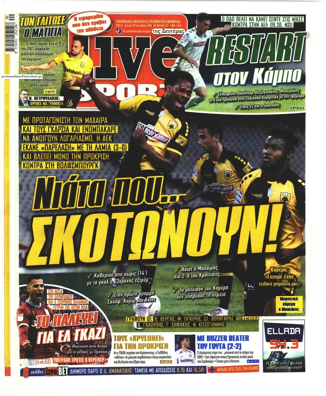 NewsMEDIA Διαβάστε όλα τα πρωτοσέλιδα των αθλητικών εφημερίδων της Δευτέρας 28 Σεπτεμβρίου 2020 FacebookXEmailViberWhatsAppCopy URLΤυπώνω Διαβάστε όλα τα πρωτοσέλιδα των αθλητικών εφημερίδων της Δευτέρας 28 Σεπτεμβρίου. Πλήρης ενημέρωση με μια γρήγορη ματιά!