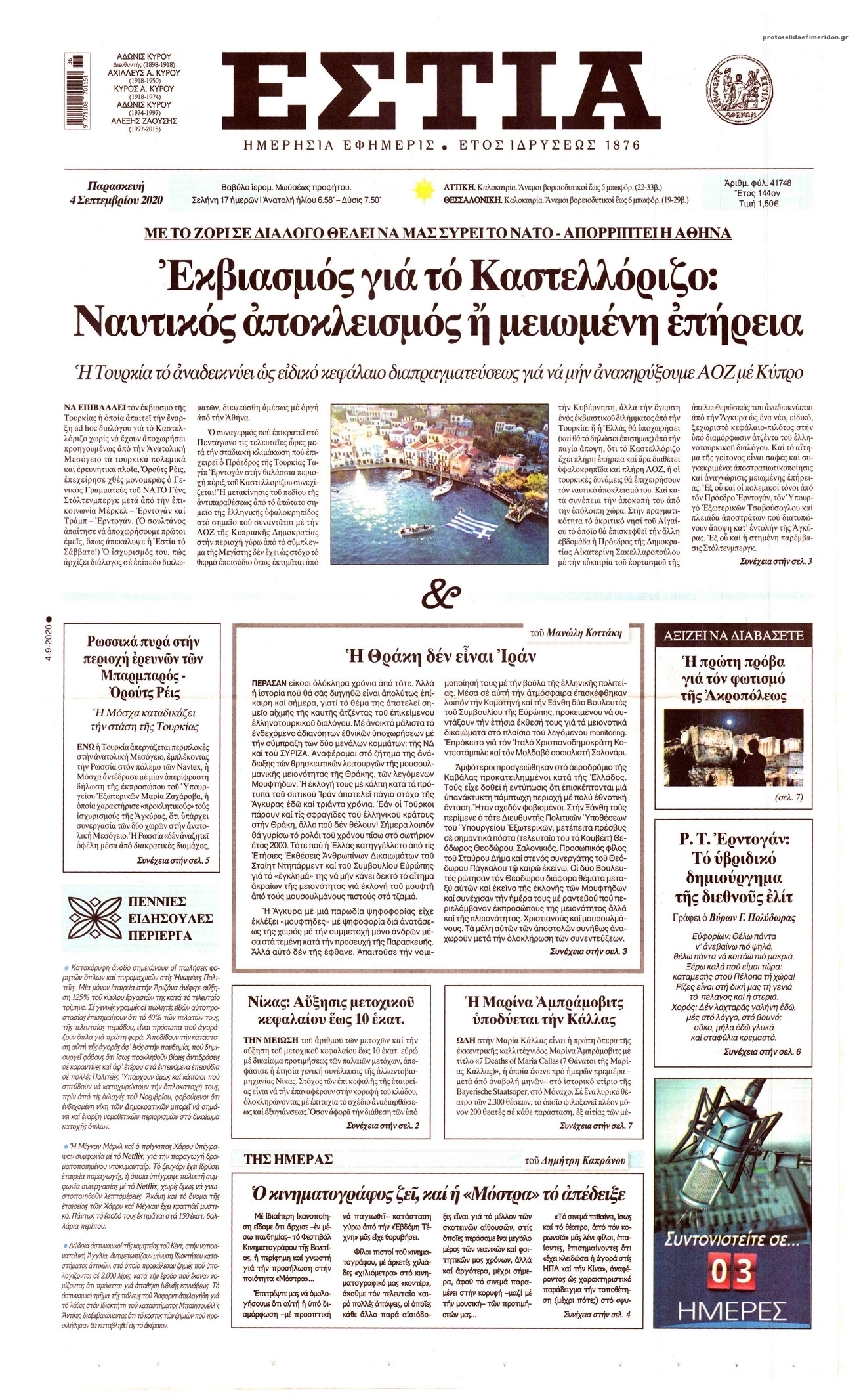 NewsMEDIASLIDER Διαβάστε όλα τα πρωτοσέλιδα των πολιτικών εφημερίδων της Παρασκευής 4 Σεπτεμβρίου 2020 FacebookXEmailViberWhatsAppCopy URLΤυπώνω Διαβάστε όλα τα πρωτοσέλιδα των πολιτικών εφημερίδων της Παρασκευής 4 Σεπτεμβρίου. Πλήρης ενημέρωση με μια γρήγορη ματιά!