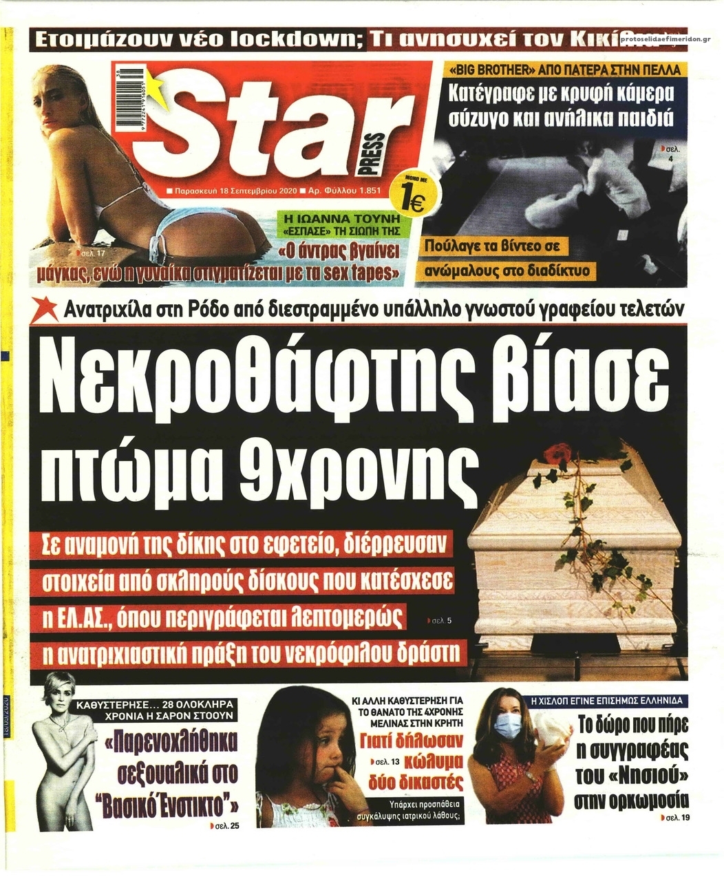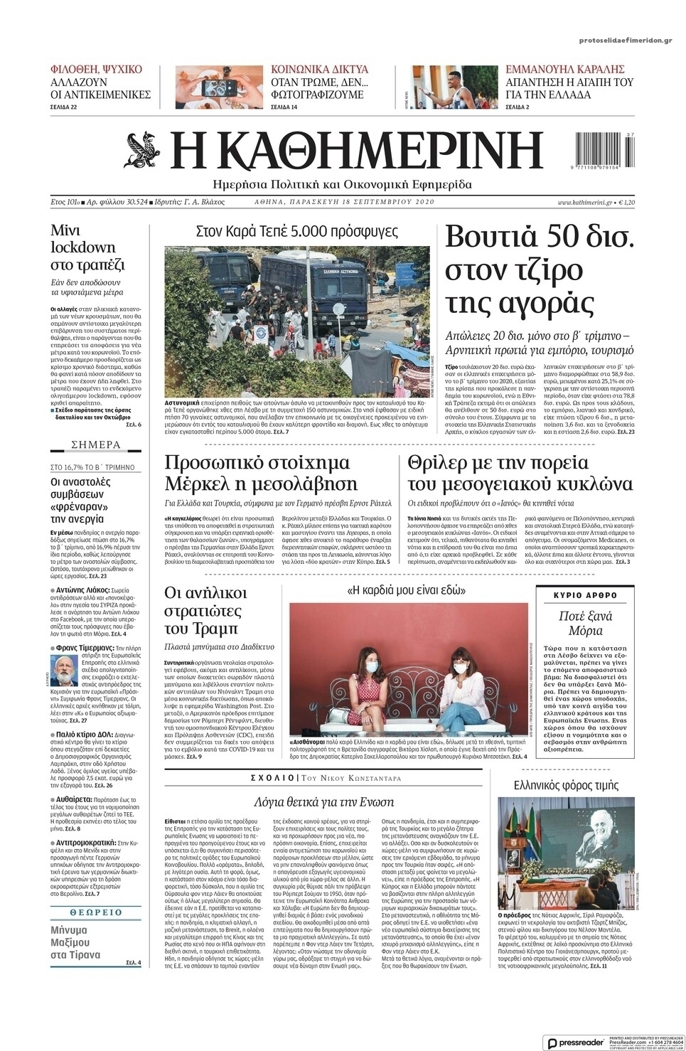 NewsMEDIASLIDER Διαβάστε όλα τα πρωτοσέλιδα των πολιτικών εφημερίδων της Παρασκευής 18 Σεπτεμβρίου 2020 FacebookXEmailViberWhatsAppCopy URLΤυπώνω Διαβάστε όλα τα πρωτοσέλιδα των πολιτικών εφημερίδων της Παρασκευής 18 Σεπτεμβρίου. Πλήρης ενημέρωση με μια γρήγορη ματιά!