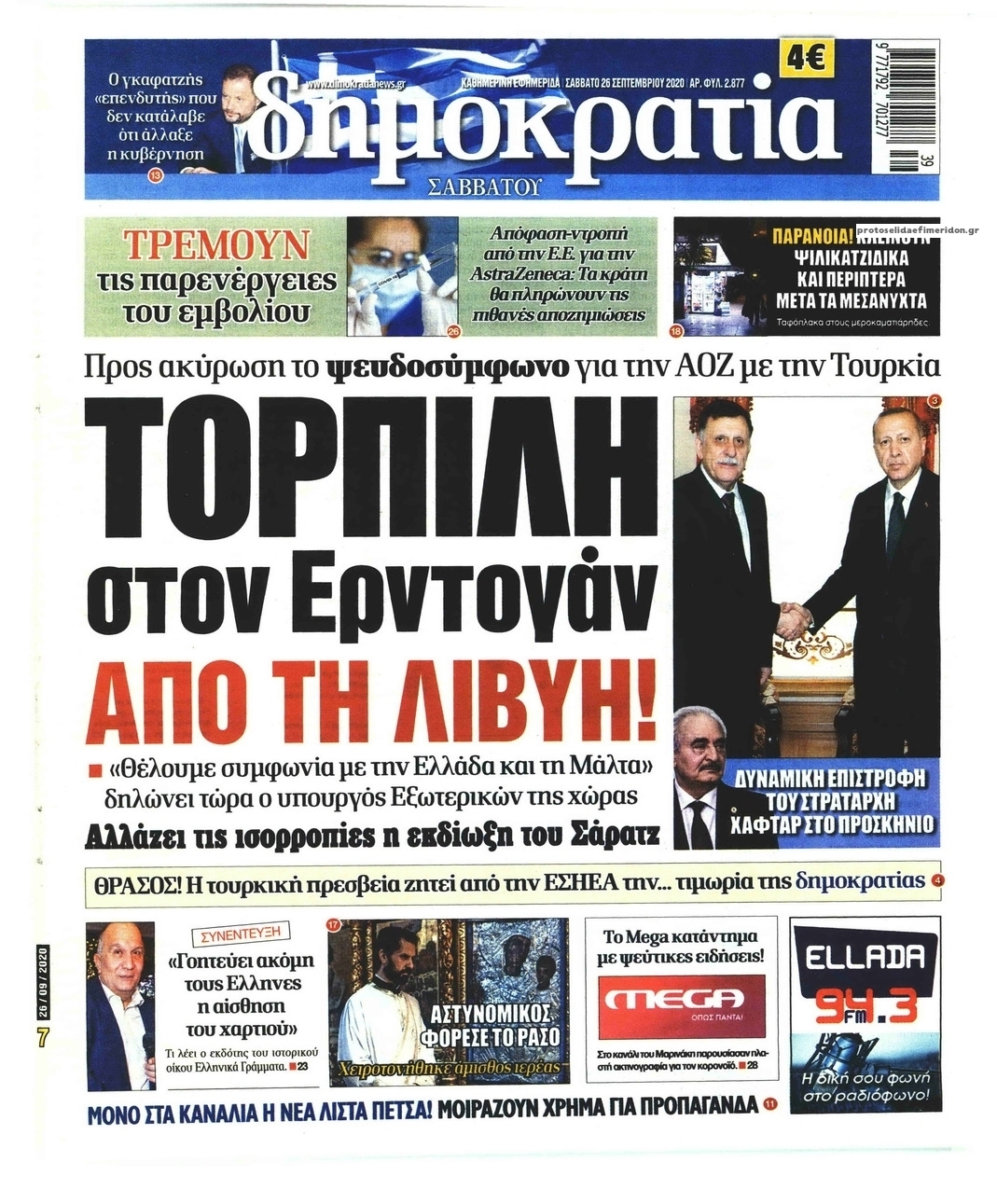 NewsMEDIASLIDER Διαβάστε όλα τα πρωτοσέλιδα των πολιτικών εφημερίδων του Σαββάτου 26 Σεπτεμβρίου 2020 FacebookXEmailViberWhatsAppCopy URLΤυπώνω Διαβάστε όλα τα πρωτοσέλιδα των πολιτικών εφημερίδων του Σαββάτου 26 Σεπτεμβρίου. Πλήρης ενημέρωση με μια γρήγορη ματιά!