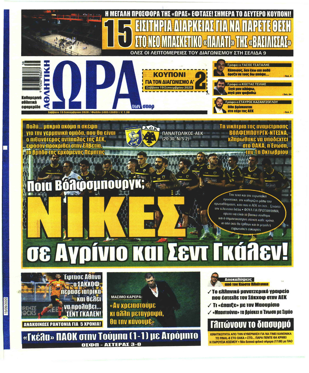 Διαβάστε όλα τα πρωτοσέλιδα των αθλητικών εφημερίδων του Σαββάτου