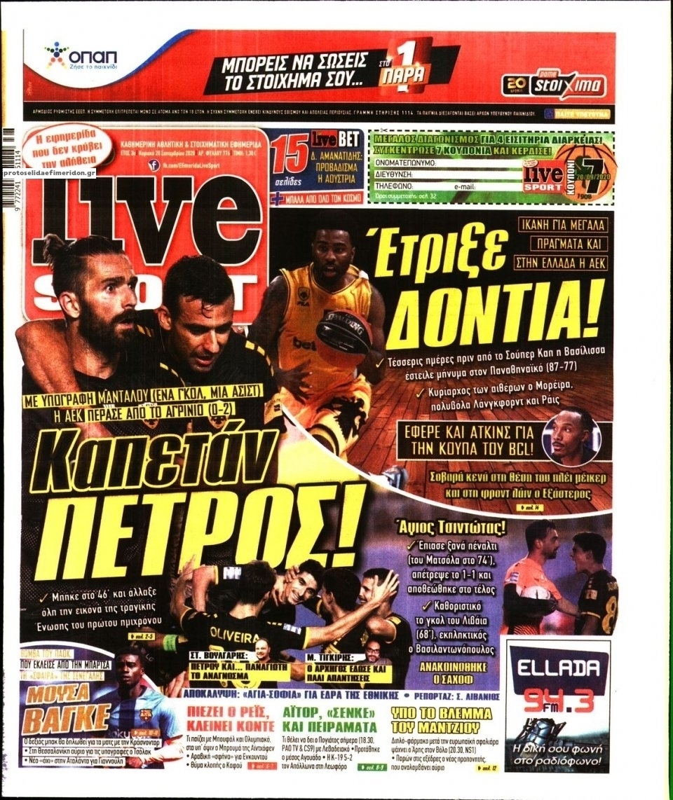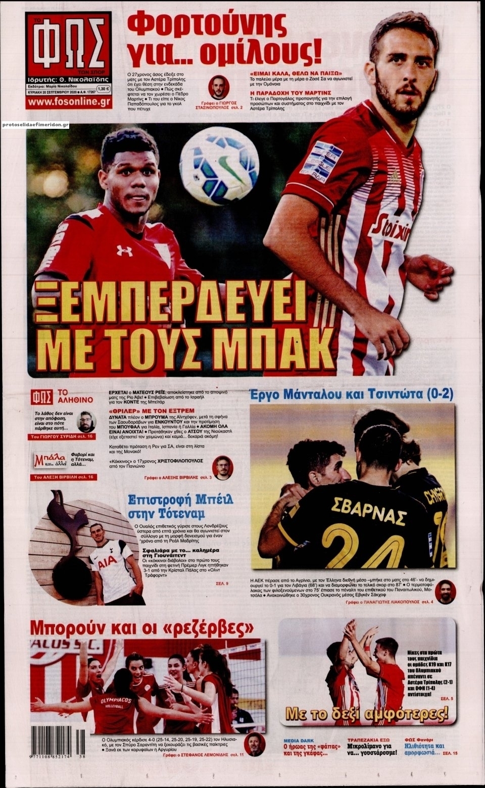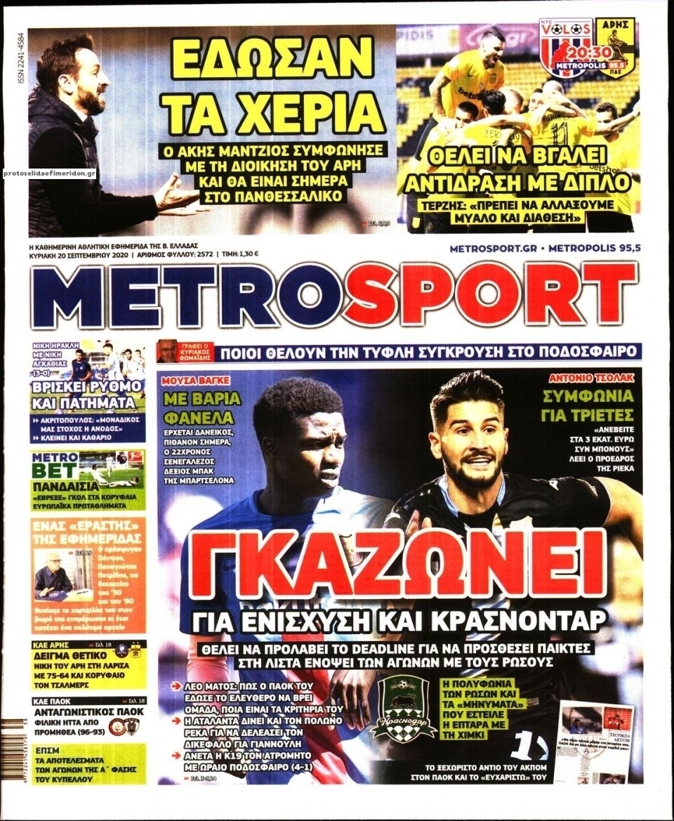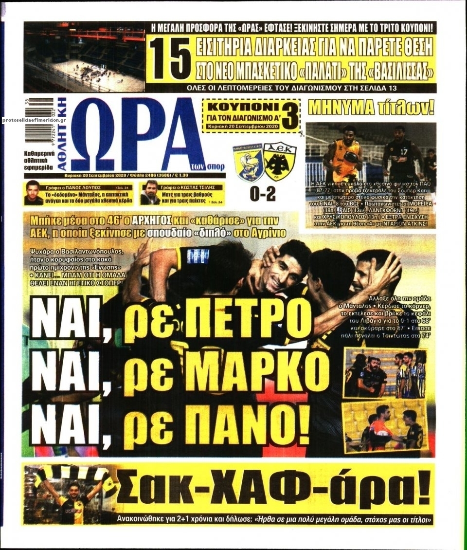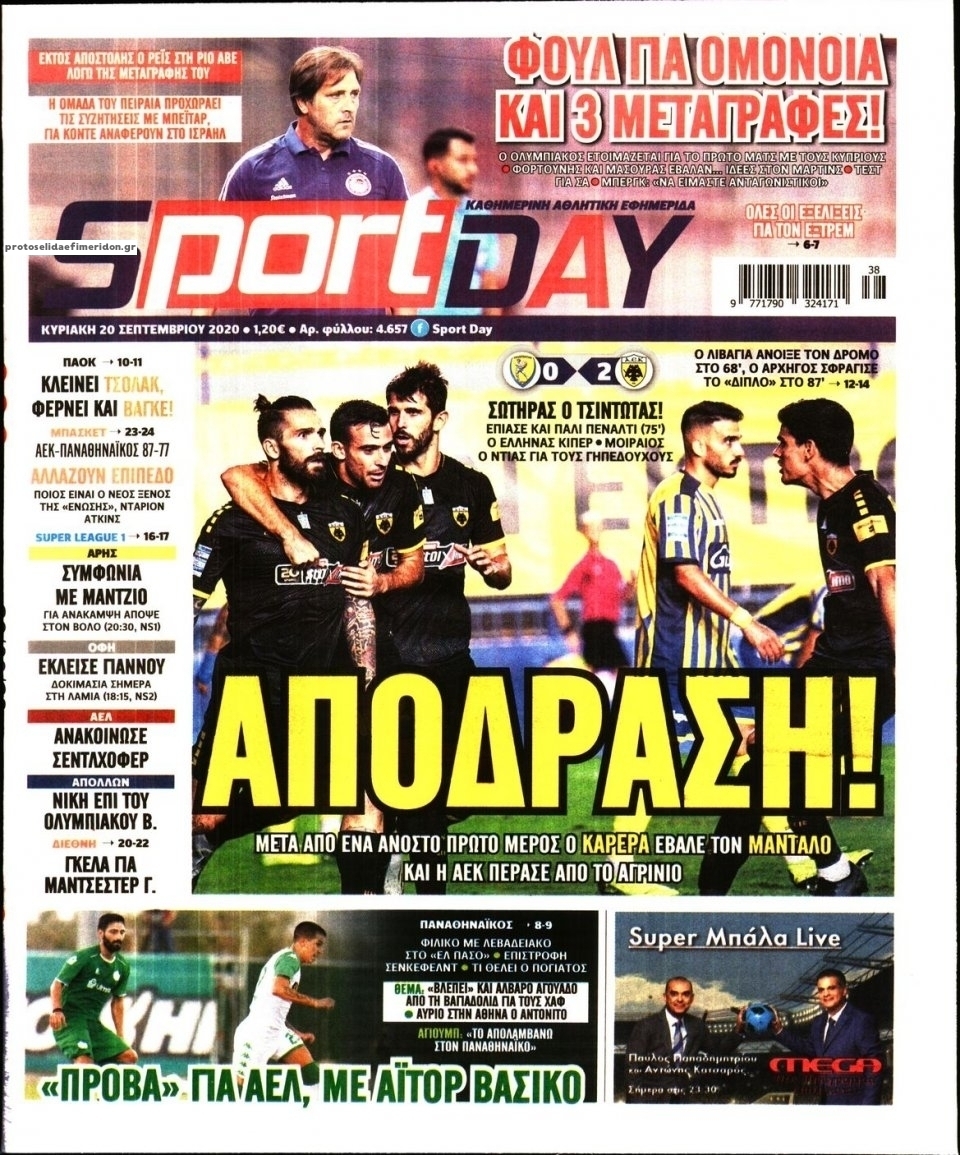 NewsMEDIA Διαβάστε όλα τα πρωτοσέλιδα των αθλητικών εφημερίδων της Κυριακής 20 Σεπτεμβρίου 2020 FacebookTwitterEmailViberWhatsAppCopy URLΤυπώνω Διαβάστε όλα τα πρωτοσέλιδα των αθλητικών εφημερίδων της Κυριακής 20 Σεπτεμβρίου. Πλήρης ενημέρωση με μια γρήγορη ματιά!