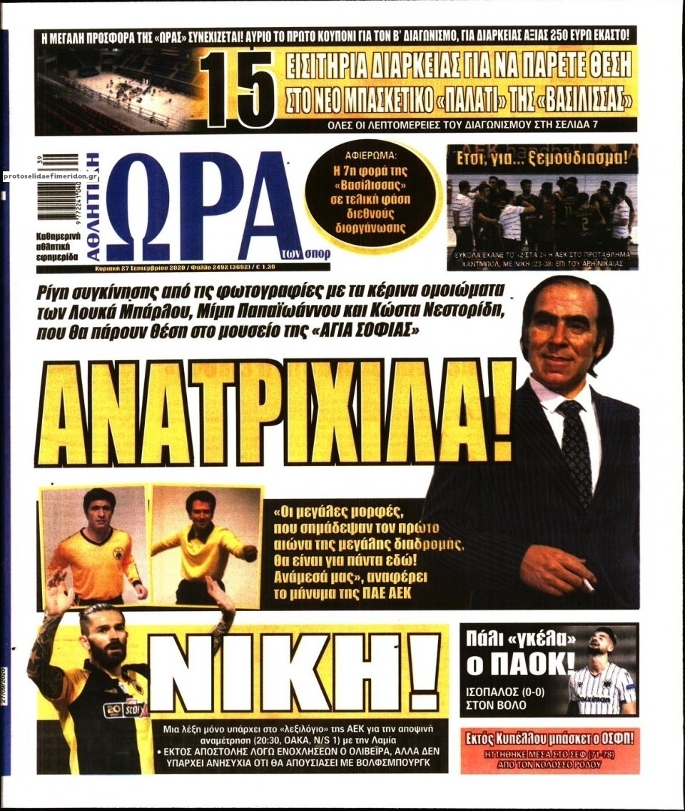 NewsMEDIA Διαβάστε όλα τα πρωτοσέλιδα των αθλητικών εφημερίδων της Κυριακής 27 Σεπτεμβρίου 2020 FacebookTwitterEmailViberWhatsAppCopy URLΤυπώνω Διαβάστε όλα τα πρωτοσέλιδα των αθλητικών εφημερίδων της Κυριακής 27 Σεπτεμβρίου. Πλήρης ενημέρωση με μια γρήγορη ματιά!