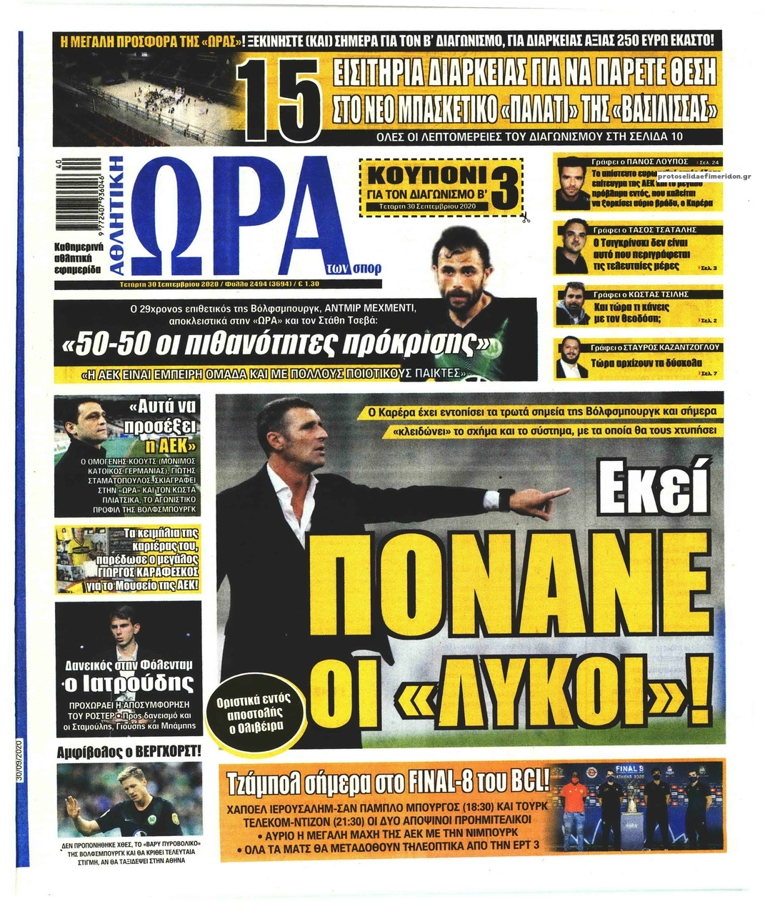 NewsMEDIA Διαβάστε όλα τα πρωτοσέλιδα των αθλητικών εφημερίδων της Τετάρτης 30 Σεπτεμβρίου 2020 FacebookTwitterEmailViberWhatsAppCopy URLΤυπώνω Διαβάστε όλα τα πρωτοσέλιδα των αθλητικών εφημερίδων της Τετάρτης 30 Σεπτεμβρίου. Πλήρης ενημέρωση με μια γρήγορη ματιά!