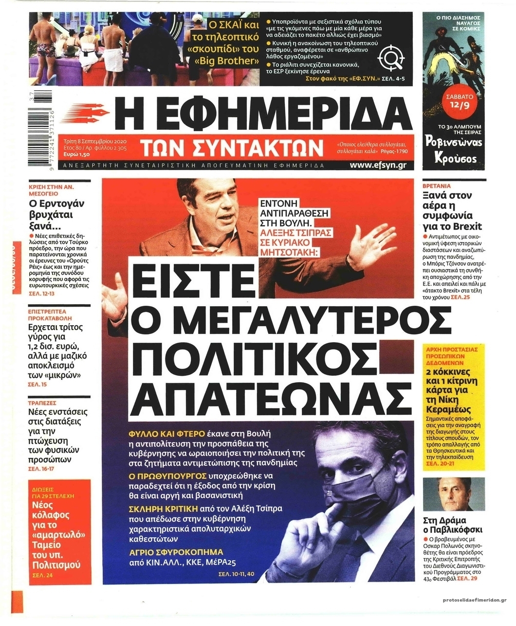 NewsMEDIASLIDER Διαβάστε όλα τα πρωτοσέλιδα των πολιτικών εφημερίδων της Τρίτης 8 Σεπτεμβρίου 2020 FacebookXEmailViberWhatsAppCopy URLΤυπώνω Διαβάστε όλα τα πρωτοσέλιδα των πολιτικών εφημερίδων της Τρίτης 8 Σεπτεμβρίου. Πλήρης ενημέρωση με μια γρήγορη ματιά!