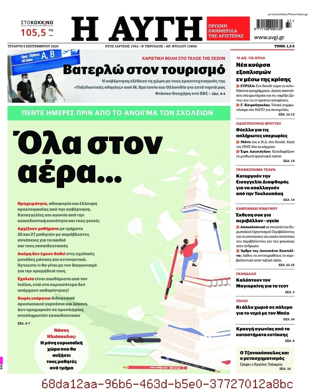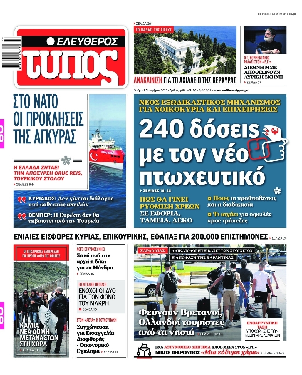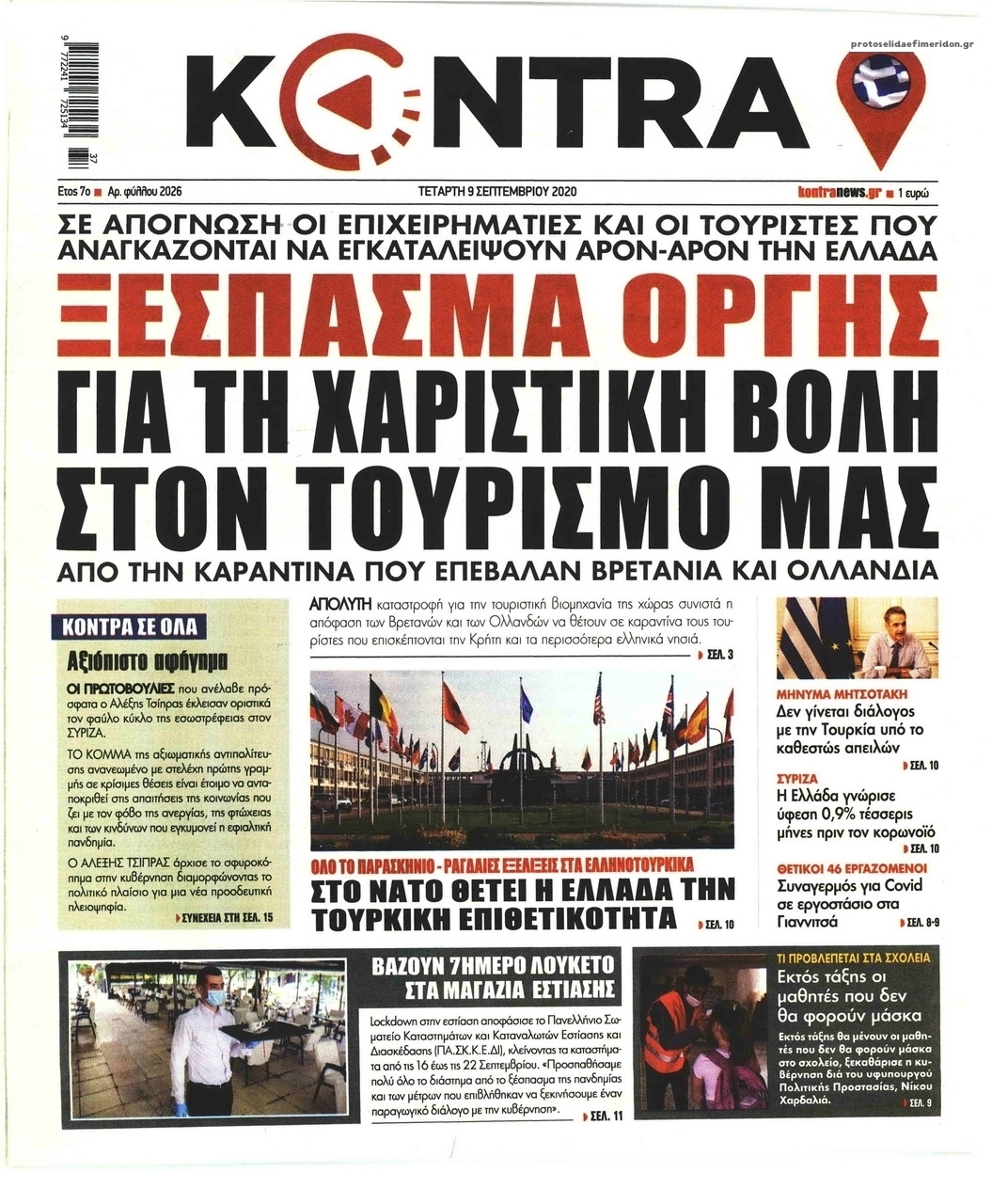 NewsMEDIA Διαβάστε όλα τα πρωτοσέλιδα των πολιτικών εφημερίδων της Τετάρτης 9 Σεπτεμβρίου 2020 FacebookTwitterEmailViberWhatsAppCopy URLΤυπώνω Διαβάστε όλα τα πρωτοσέλιδα των πολιτικών εφημερίδων της Τετάρτης 9 Σεπτεμβρίου. Πλήρης ενημέρωση με μια γρήγορη ματιά!
