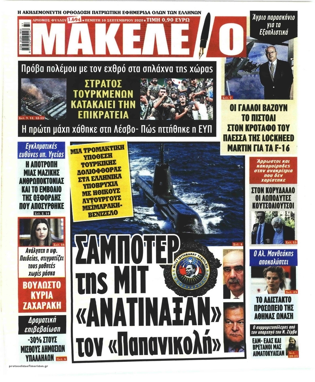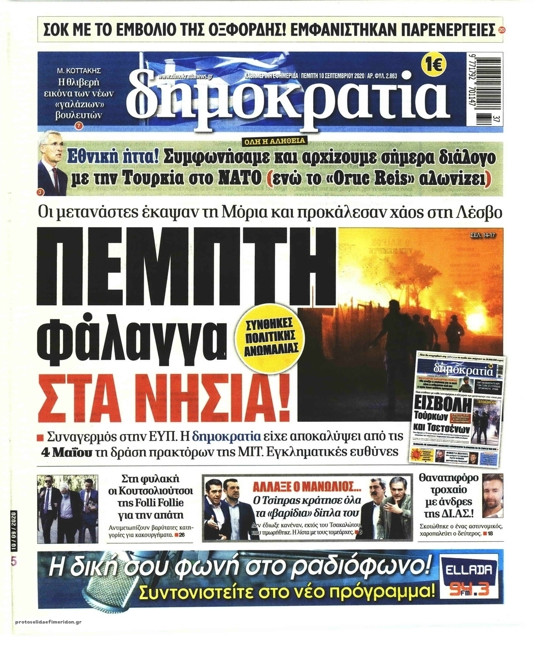NewsMEDIA Διαβάστε όλα τα πρωτοσέλιδα των πολιτικών εφημερίδων της Πέμπτης 10 Σεπτεμβρίου 2020 FacebookTwitterEmailViberWhatsAppCopy URLΤυπώνω Διαβάστε όλα τα πρωτοσέλιδα των πολιτικών εφημερίδων της Πέμπτης 10 Σεπτεμβρίου. Πλήρης ενημέρωση με μια γρήγορη ματιά!