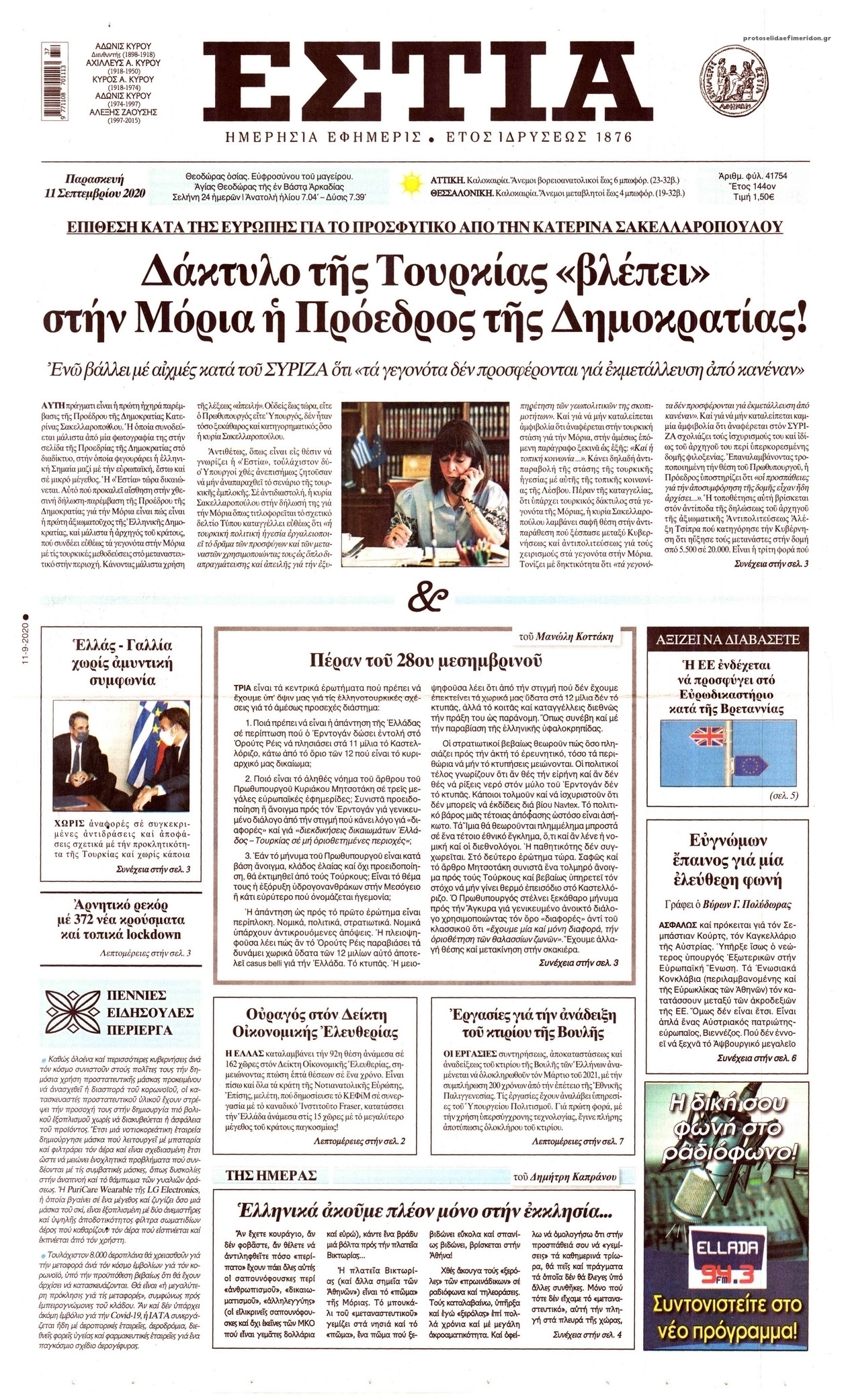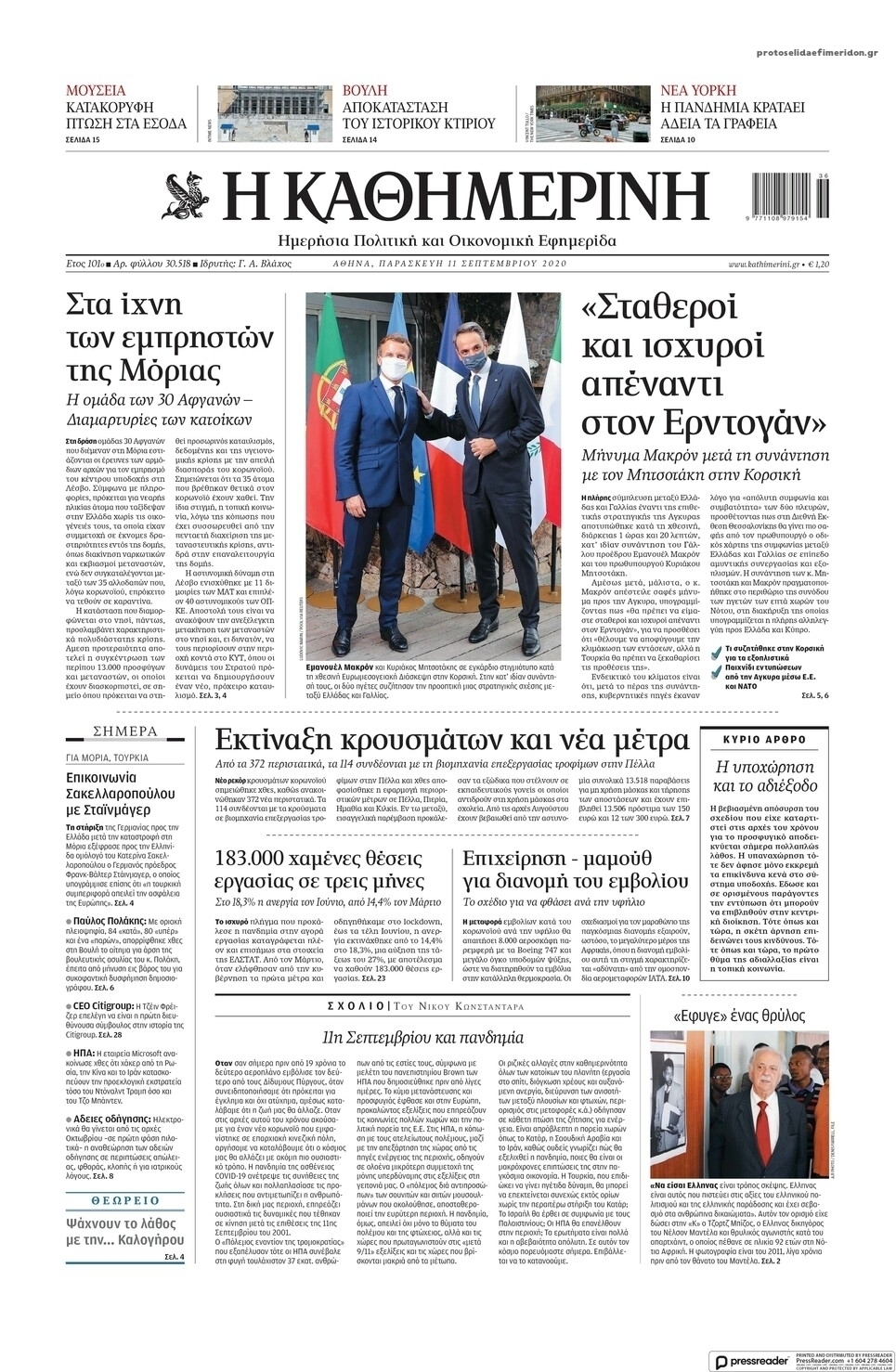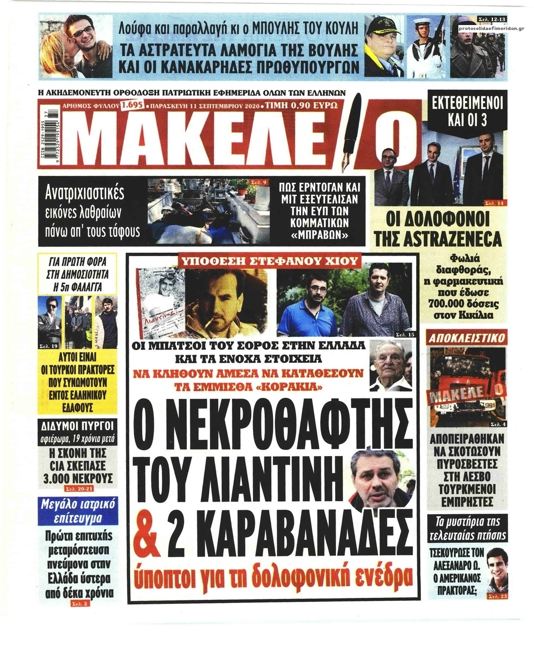 NewsMEDIA Διαβάστε όλα τα πρωτοσέλιδα των πολιτικών εφημερίδων της Παρασκευής 11 Σεπτεμβρίου 2020 FacebookTwitterEmailViberWhatsAppCopy URLΤυπώνω Διαβάστε όλα τα πρωτοσέλιδα των πολιτικών εφημερίδων της Παρασκευής 11 Σεπτεμβρίου. Πλήρης ενημέρωση με μια γρήγορη ματιά!