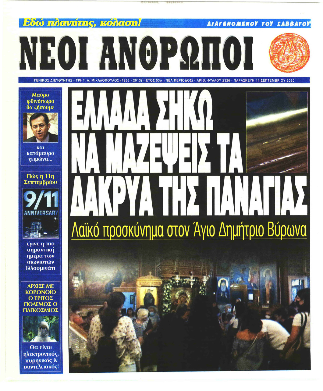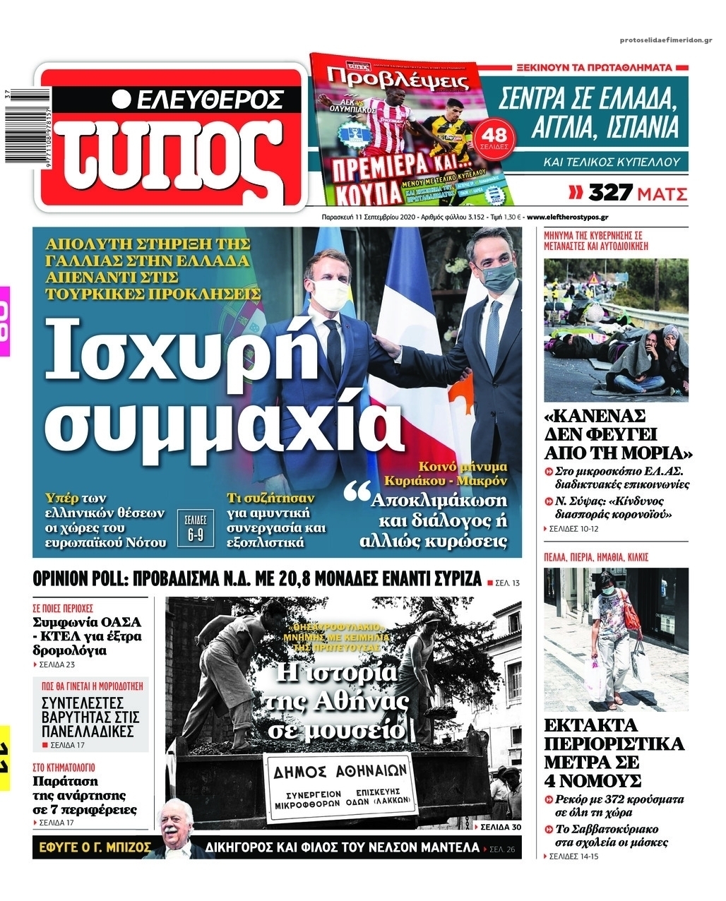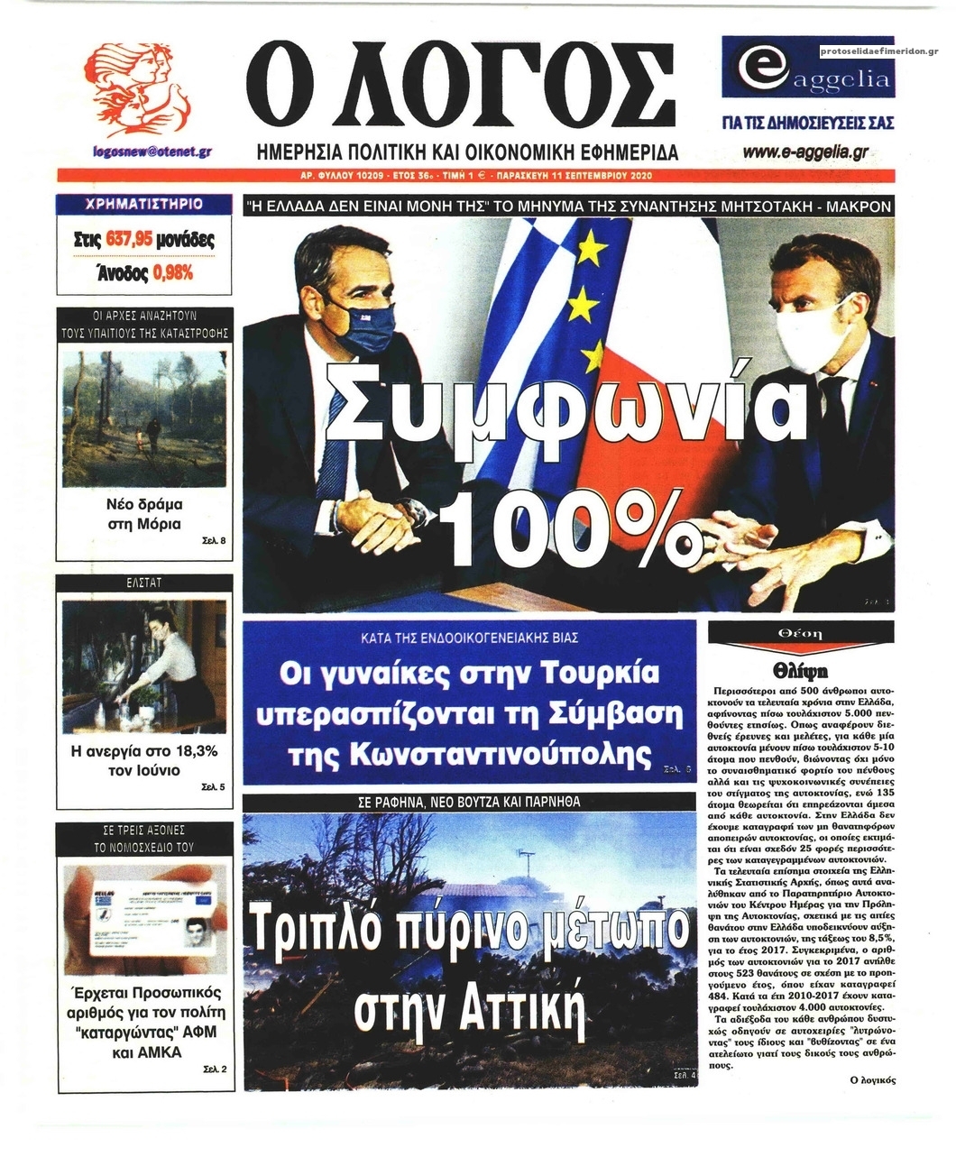 NewsMEDIA Διαβάστε όλα τα πρωτοσέλιδα των πολιτικών εφημερίδων της Παρασκευής 11 Σεπτεμβρίου 2020 FacebookTwitterEmailViberWhatsAppCopy URLΤυπώνω Διαβάστε όλα τα πρωτοσέλιδα των πολιτικών εφημερίδων της Παρασκευής 11 Σεπτεμβρίου. Πλήρης ενημέρωση με μια γρήγορη ματιά!