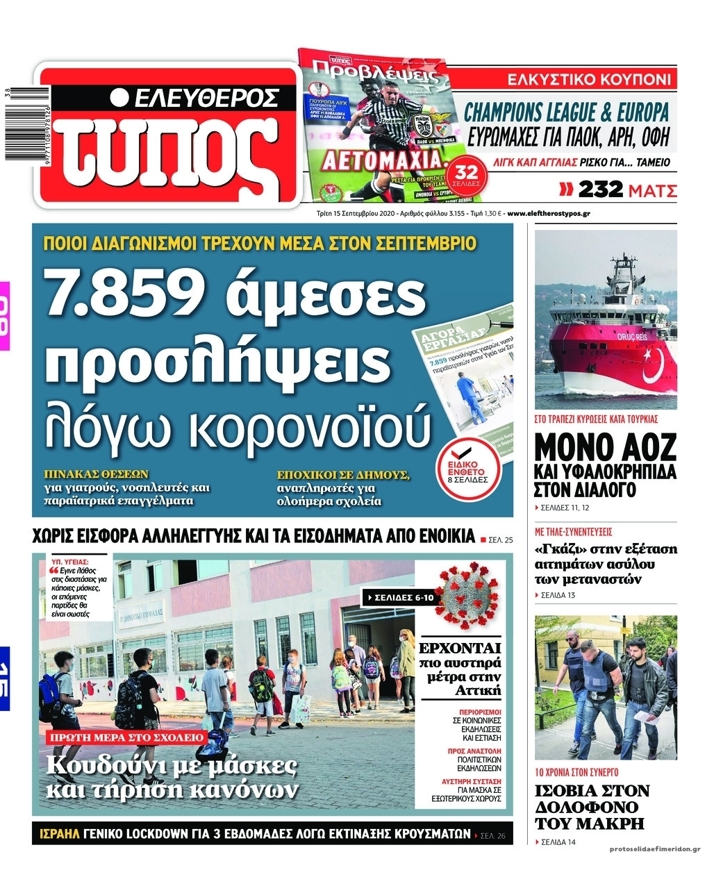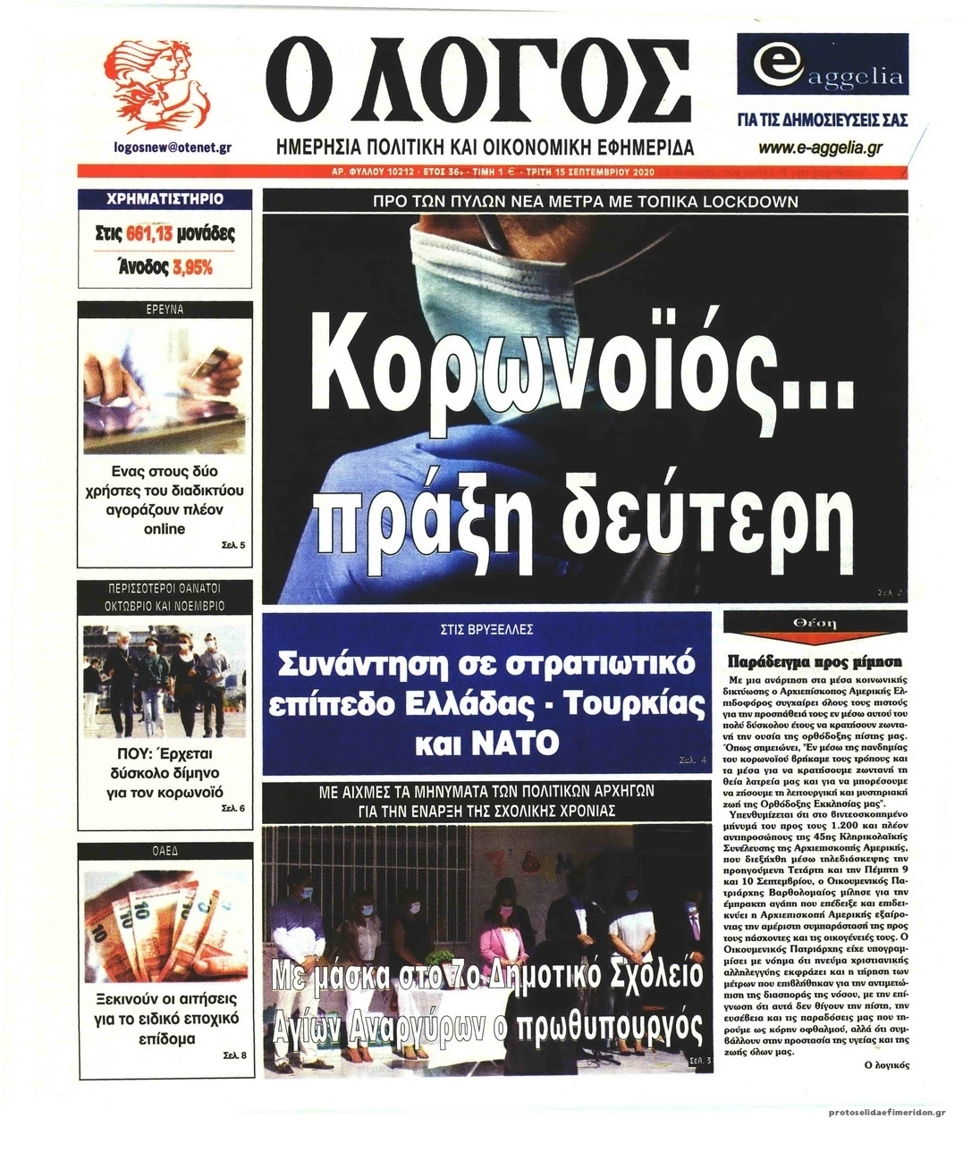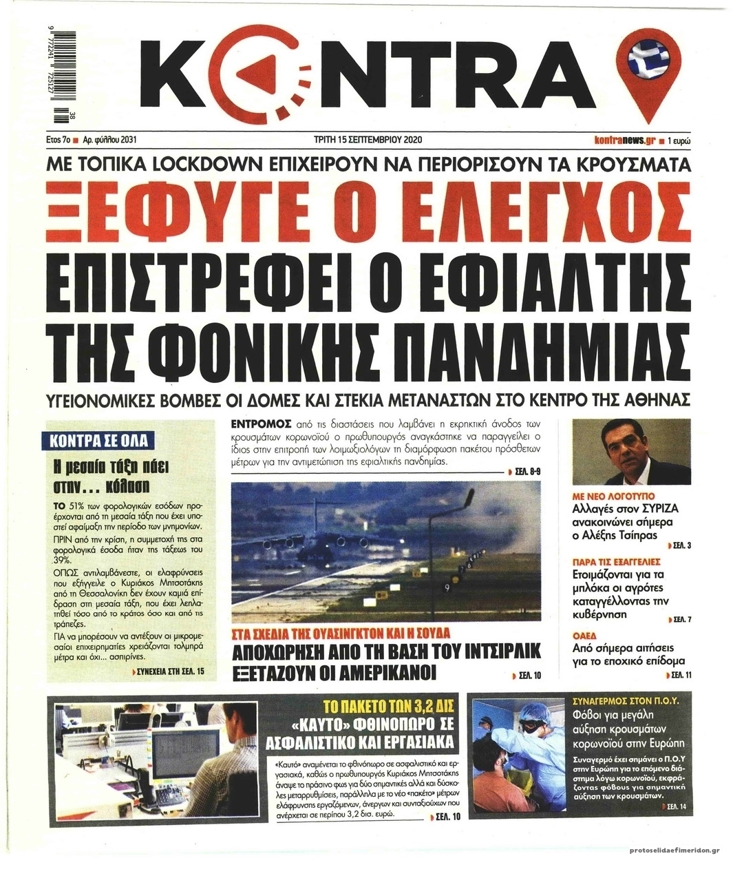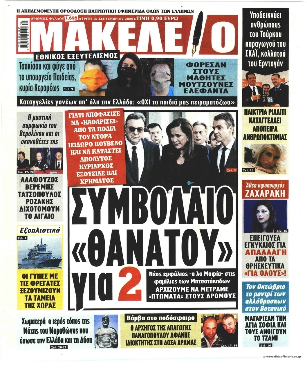 NewsMEDIA Διαβάστε όλα τα πρωτοσέλιδα των πολιτικών εφημερίδων της Τρίτης 15 Σεπτεμβρίου 2020 FacebookTwitterEmailViberWhatsAppCopy URLΤυπώνω Διαβάστε όλα τα πρωτοσέλιδα των πολιτικών εφημερίδων της Τρίτης 15 Σεπτεμβρίου. Πλήρης ενημέρωση με μια γρήγορη ματιά!